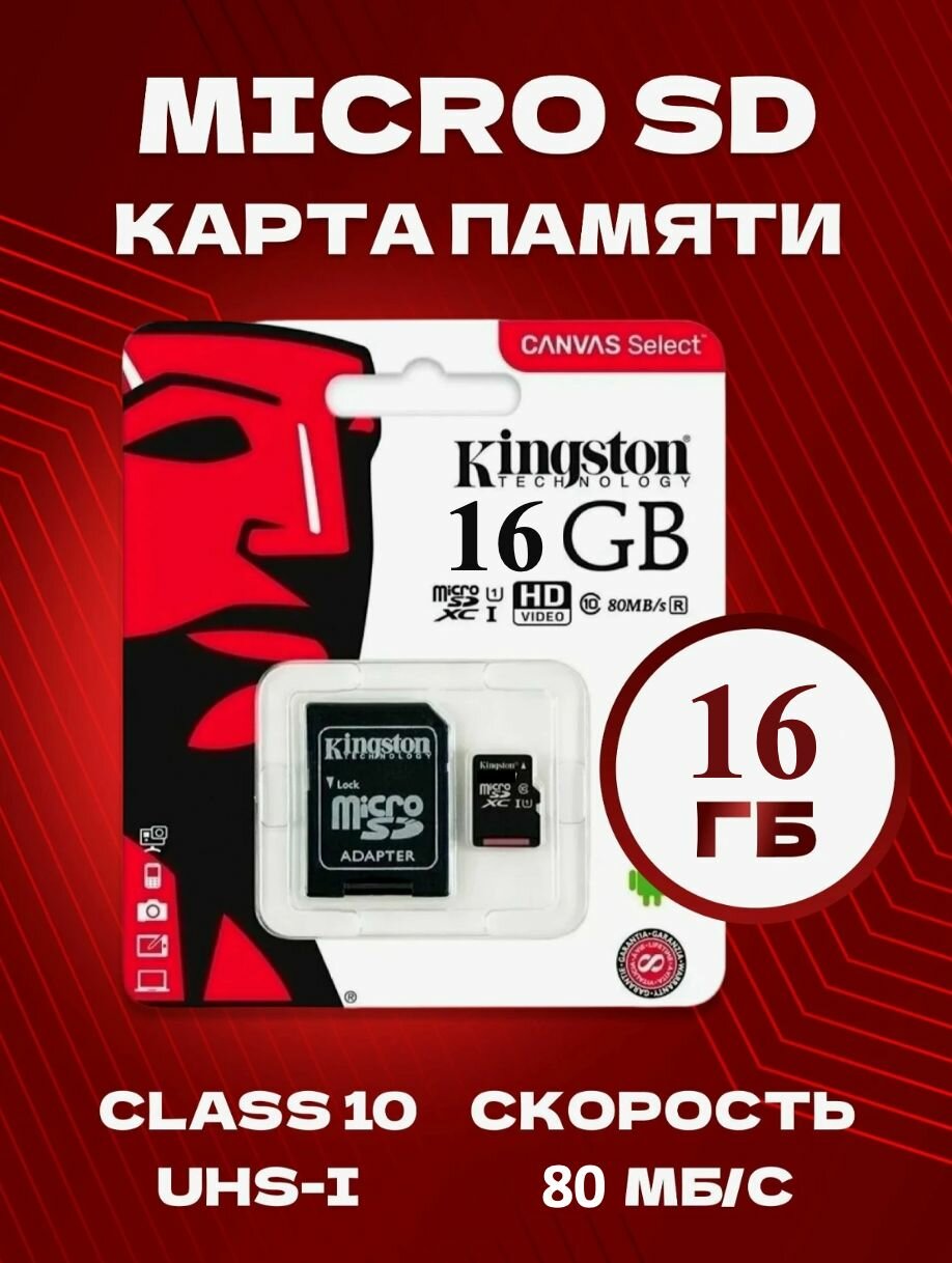 Карта памяти MicroSD с адаптером 16GB интересное: