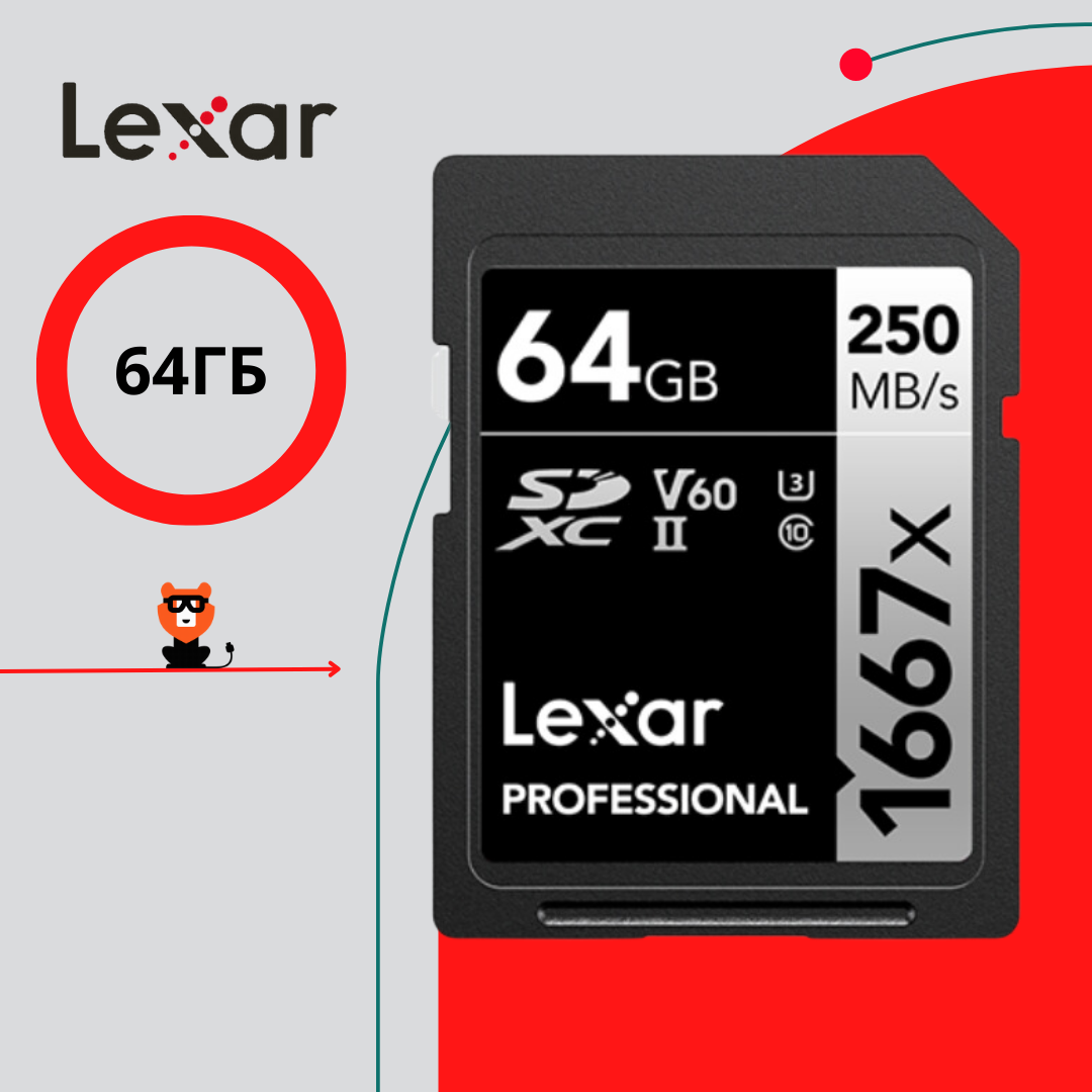 Карта памяти Lexar Professional 1667x SDXC UHS-II 64 ГБ