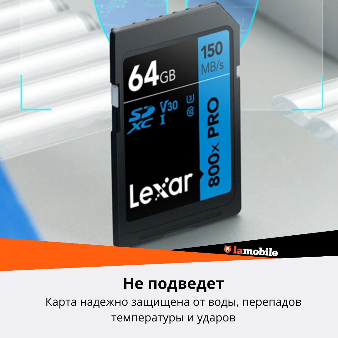 Карта памяти формата SD LEXAR Pro 800x SDXC UHS-1 U3 V30 64 ГБ