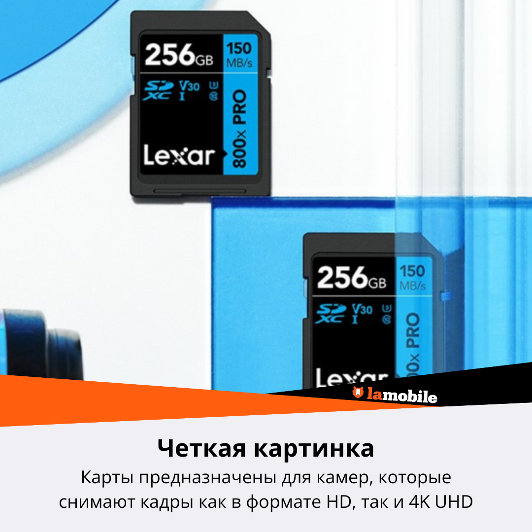 Карта памяти Lexar High-Performance 800xPro Blue SDXC 256GB UHS-I U3 V30, R/W 150/45 МБ/с