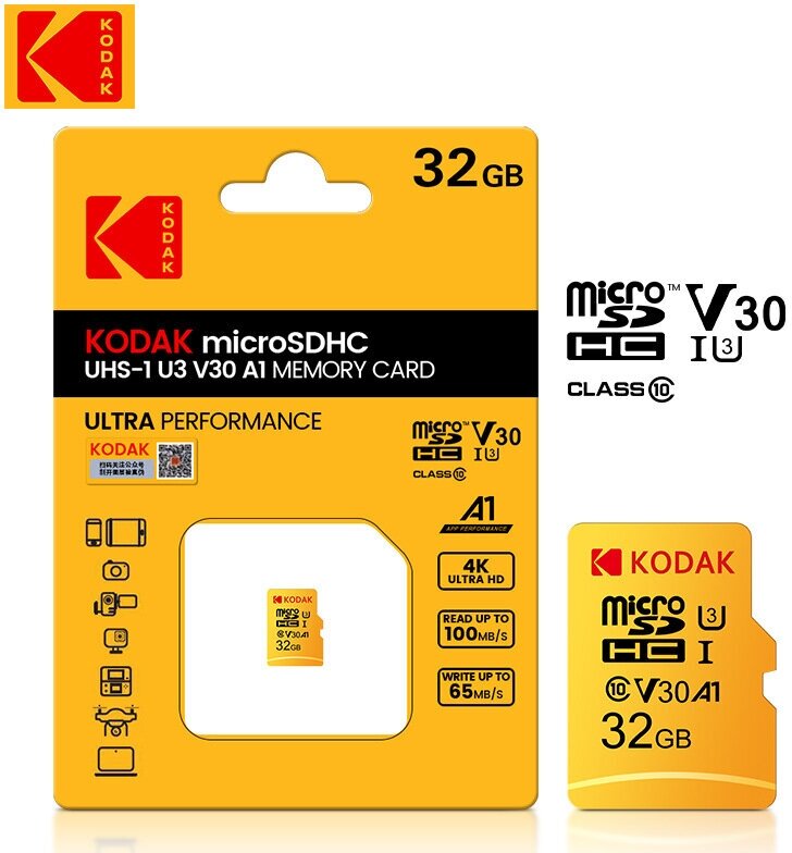 Карта памяти Kodak Micro SD класс 10 UHS-1 U3 V30 A1 32 ГБ 4K