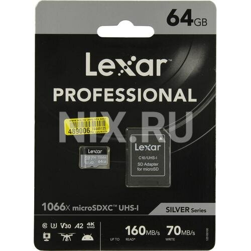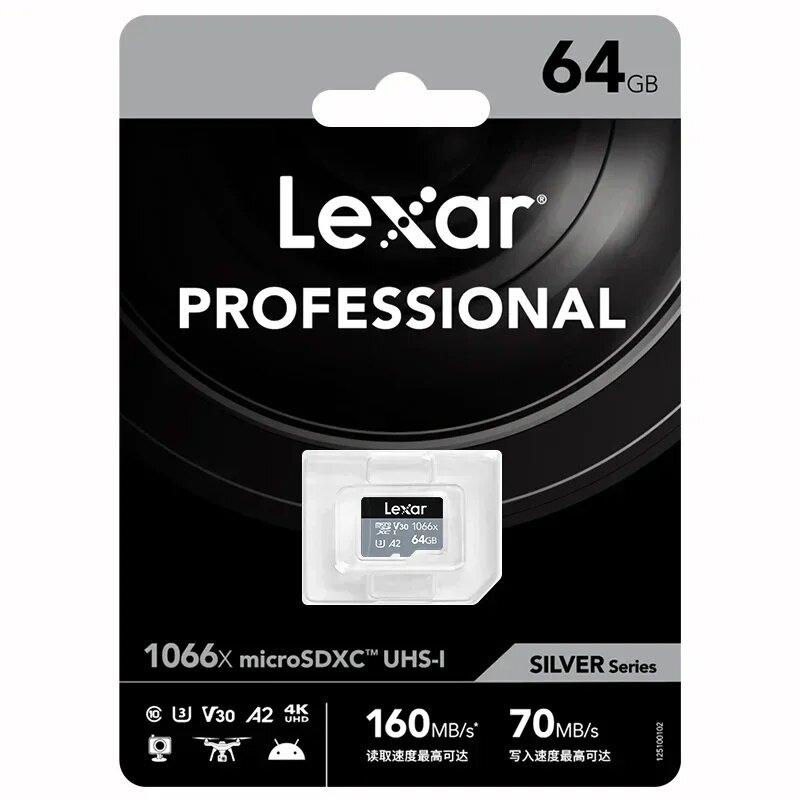 Купить Карта памяти LEXAR Silver 1066x Micro SD класс 10 UHS-1 U3 V30 A2 64 ГБ