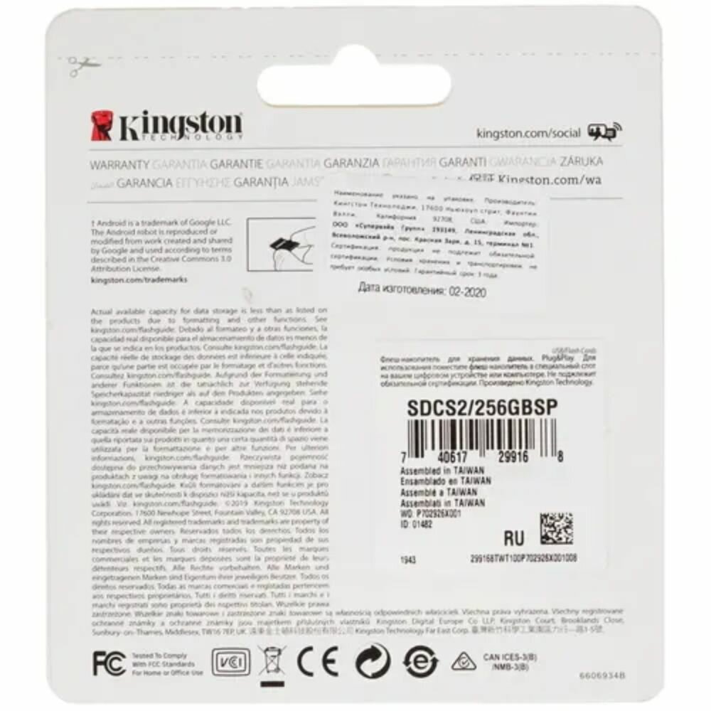 Карта памяти microSDXC 256ГБ Kingston Canvas Select Plus UHS-I U3 (sdcs2/256gbsp)