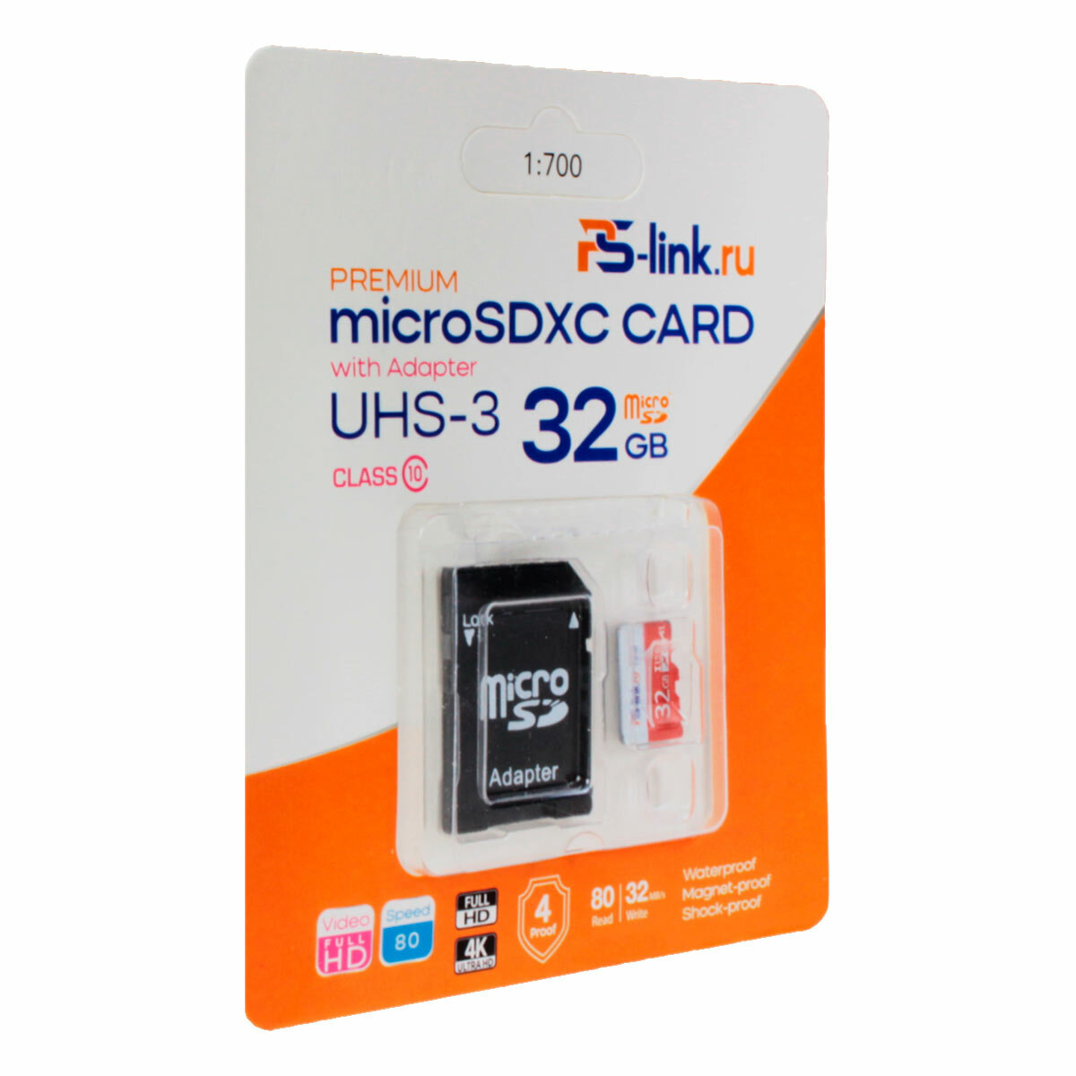 Купить Карта памяти PS-link microSDXC 32GB Class 10, UHS-3, с адаптером