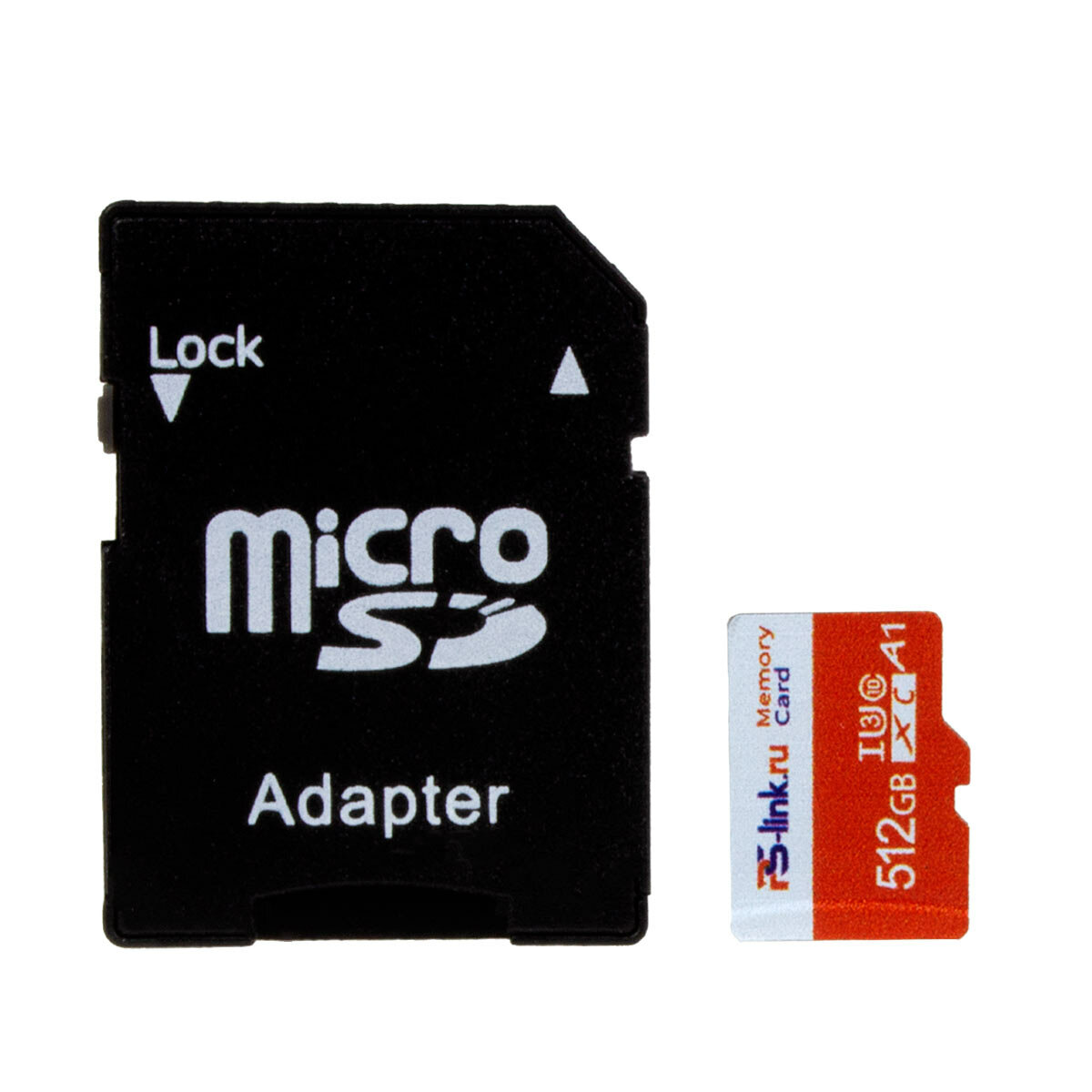 Карта памяти PS-link 512GB MicroSDXC Class 10 UHS-3 с адаптером