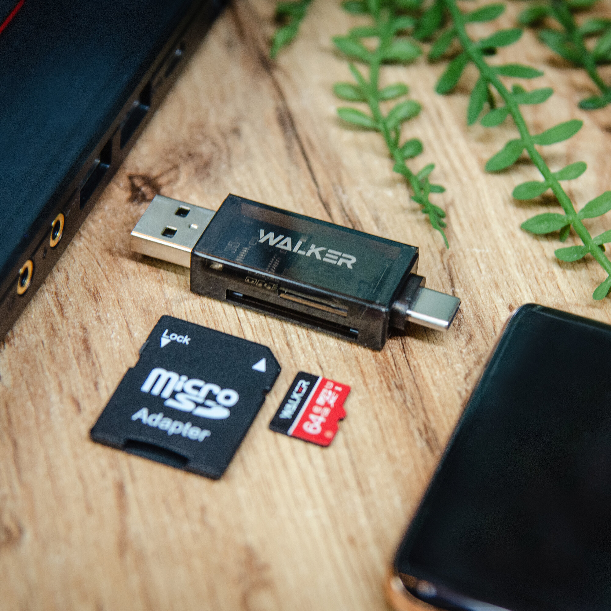 Внешний картридер Type-C-USB, WALKER, WCD-72, переходник адаптер для карты памяти microsd в sd, card reader для пк, устройство чтения, черный интересное: