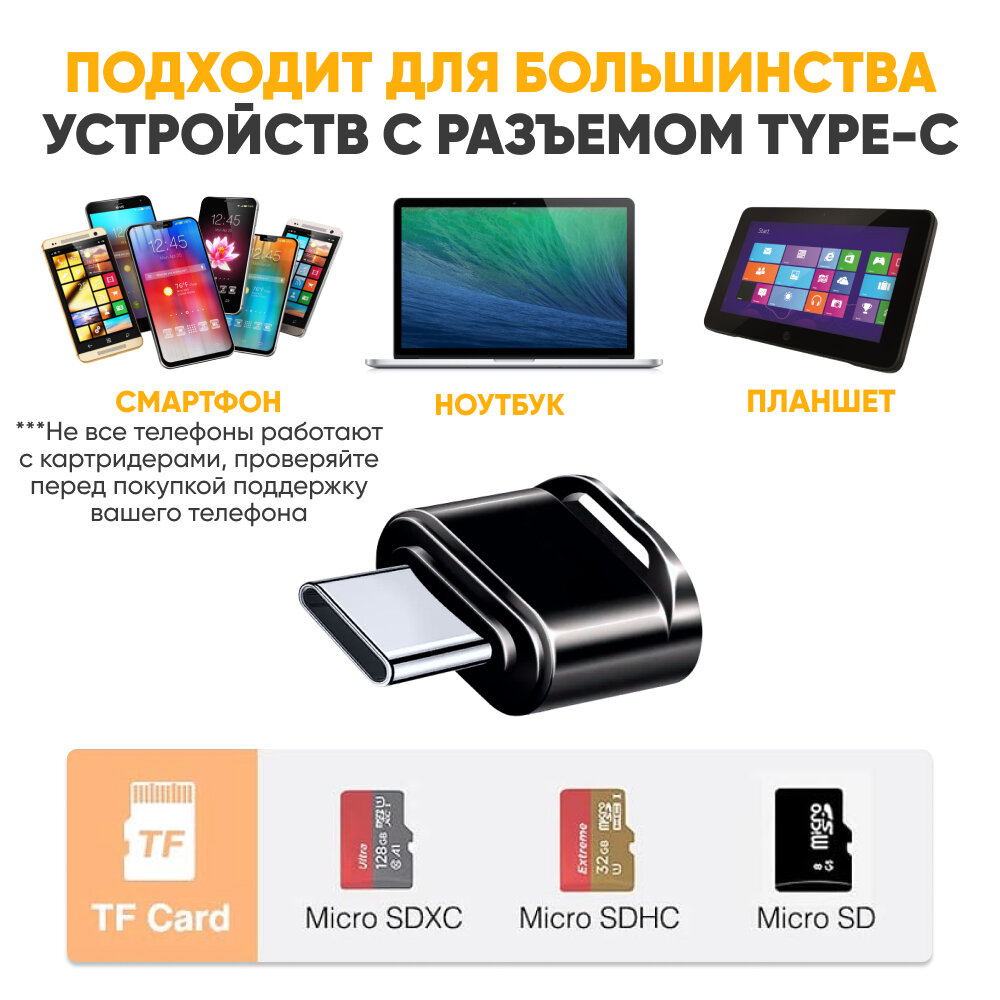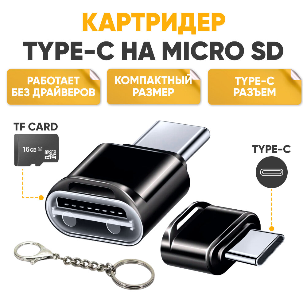 Картридер microSD type-c, адаптер для ноутбуков микросд, переходник для компьютеров микро сд, для USB-C портов