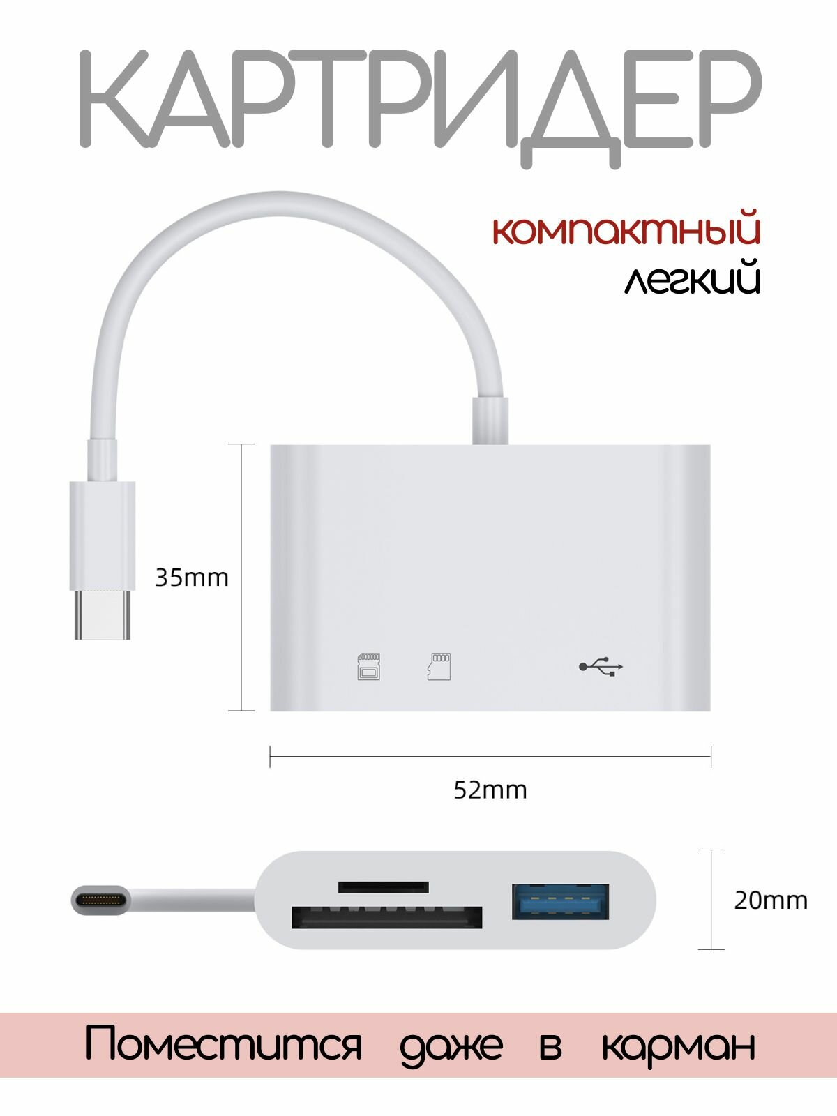 Картридер 3 в 1 TypeC/Usb/Tf/SD интересное: