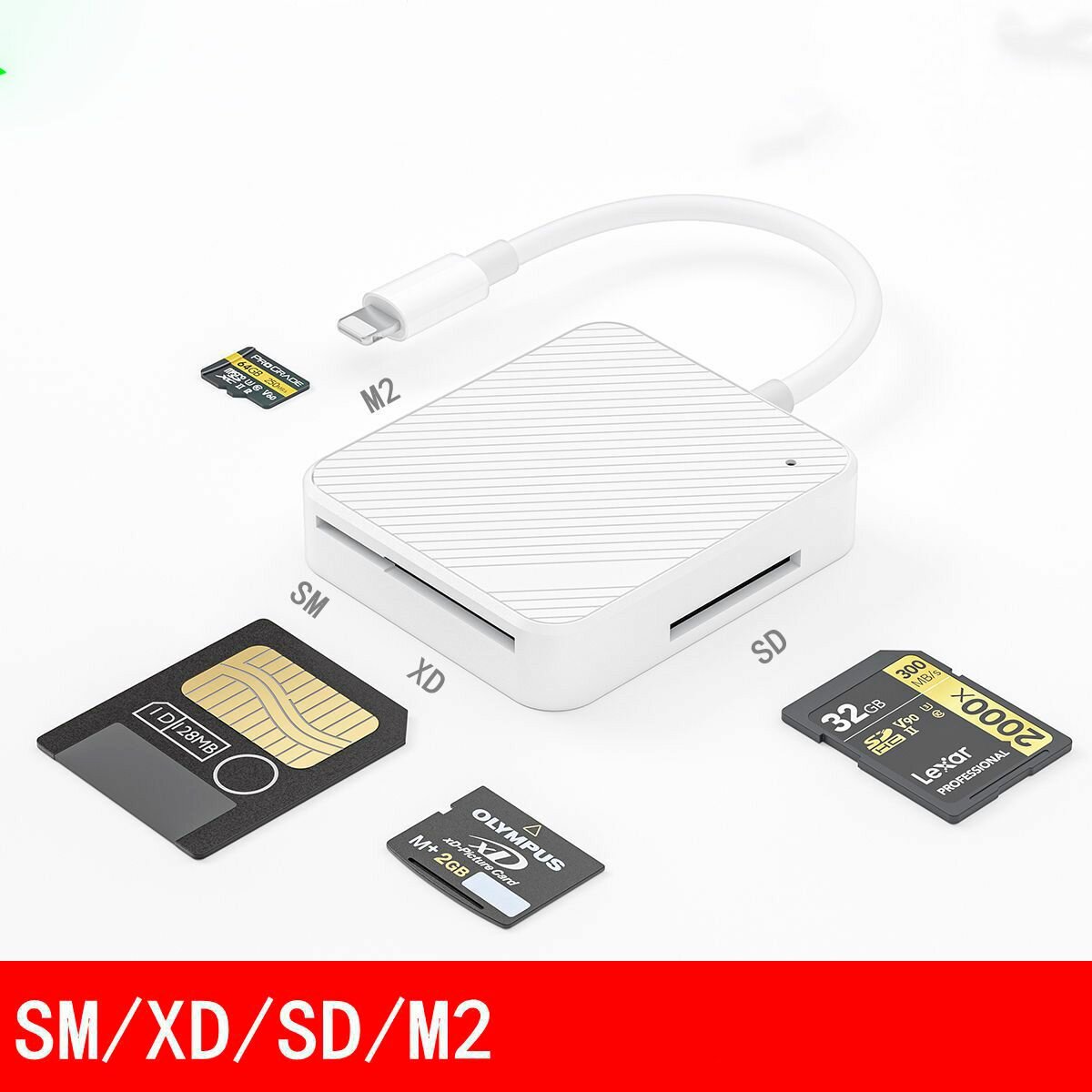 Купить Кардридер Адаптер 4 в 1 для iPhone Apple Lightning SD XD SM M2 Card Reader