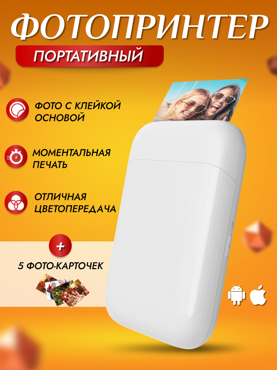 | Дополнительная информация | Мини принтер портативный, печать по технологии zink.Цветная печать на клейкой фотобумаге zink размером 5х7.6см |