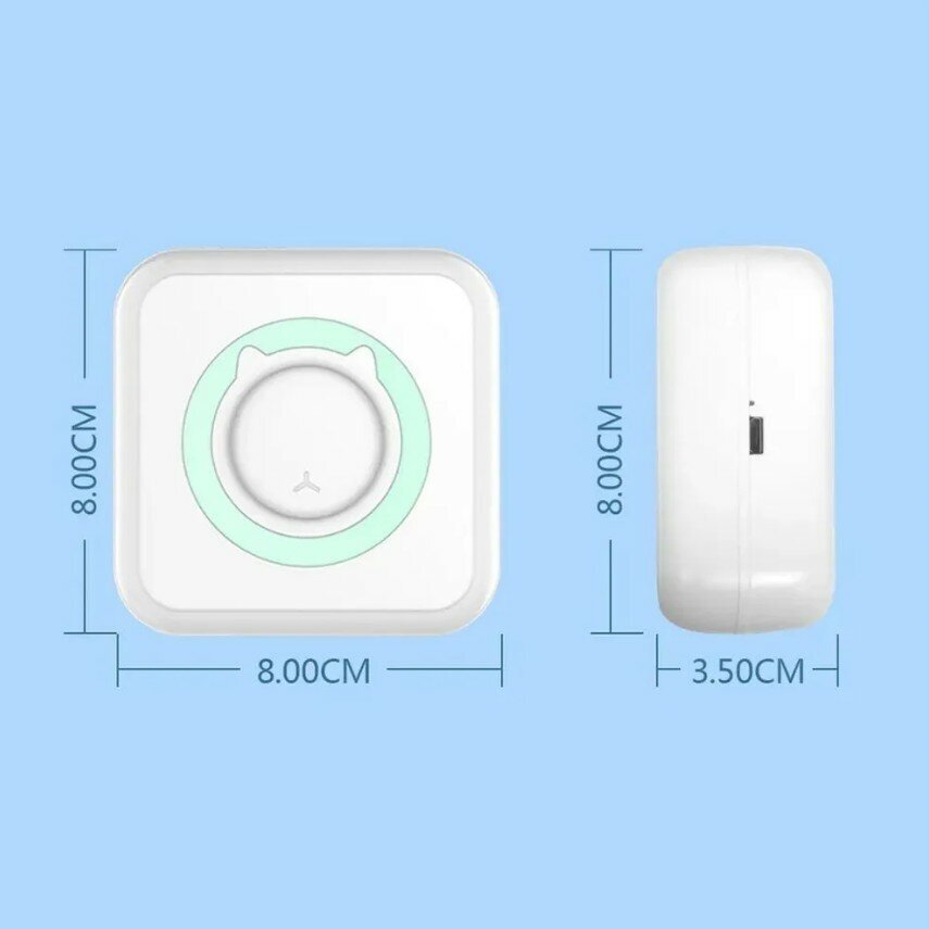 Карманный детский мини термопринтер (печать на термобумаге) + цветная термобумага 3шт. цвет голубой