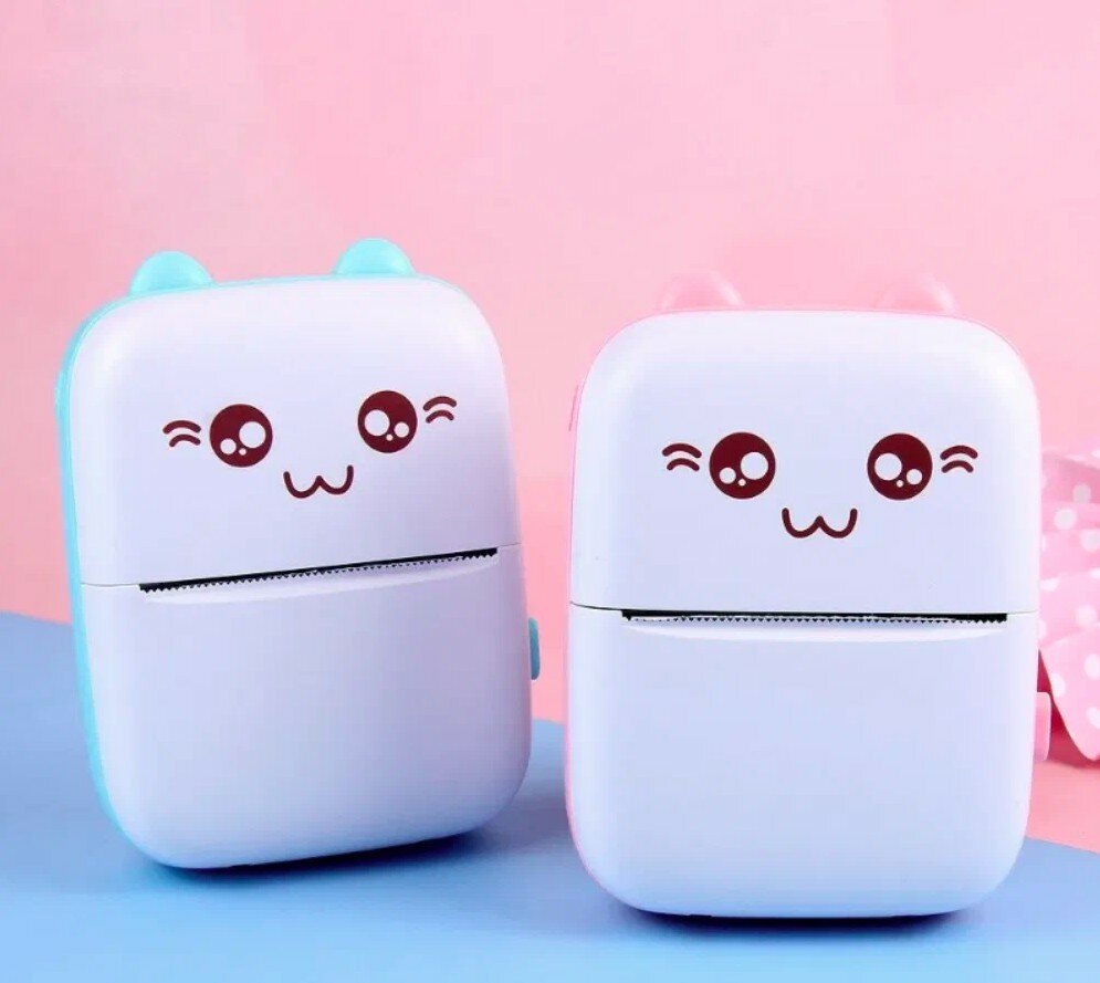 Купить Карманный детский мини термопринтер (печать на термобумаге) + цветная термобумага 3шт. цвет голубой