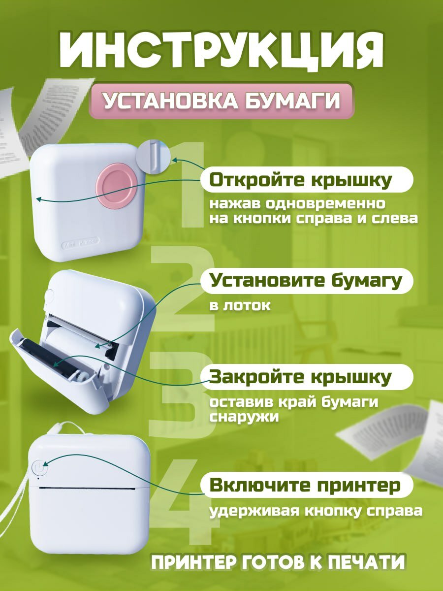 | Комплектация | Термопринтер - 1 шт, USB Type C - 1 шт., термобумага - 5 рулонов., термобумага самоклеящаяся - 5 рулонов . |