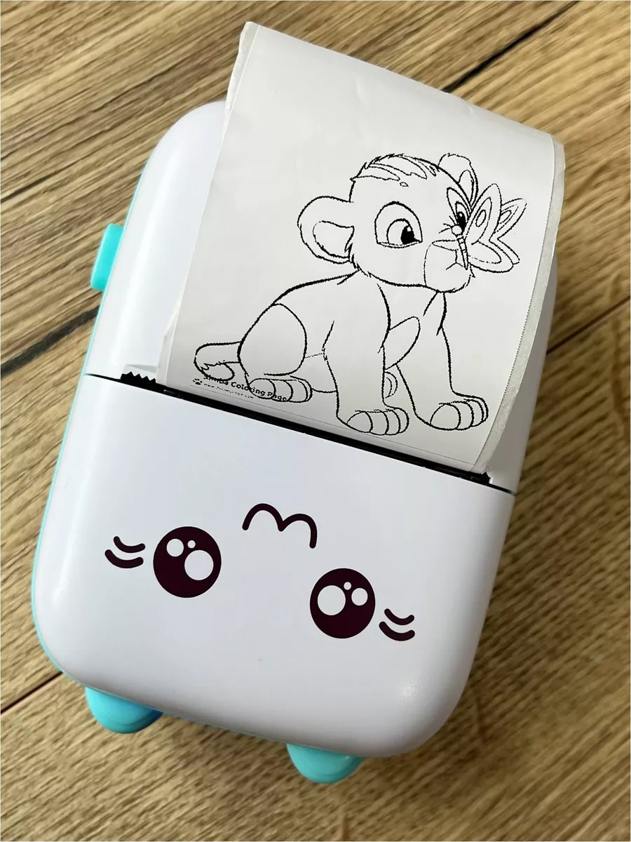 | Комплектация | минипринтер,кабель USB,5 x бумага для печати 5 x белых наклеек, 3 цветных наклейки.1 х наклейка с мультфильмом, 6 цветных фломастеров |