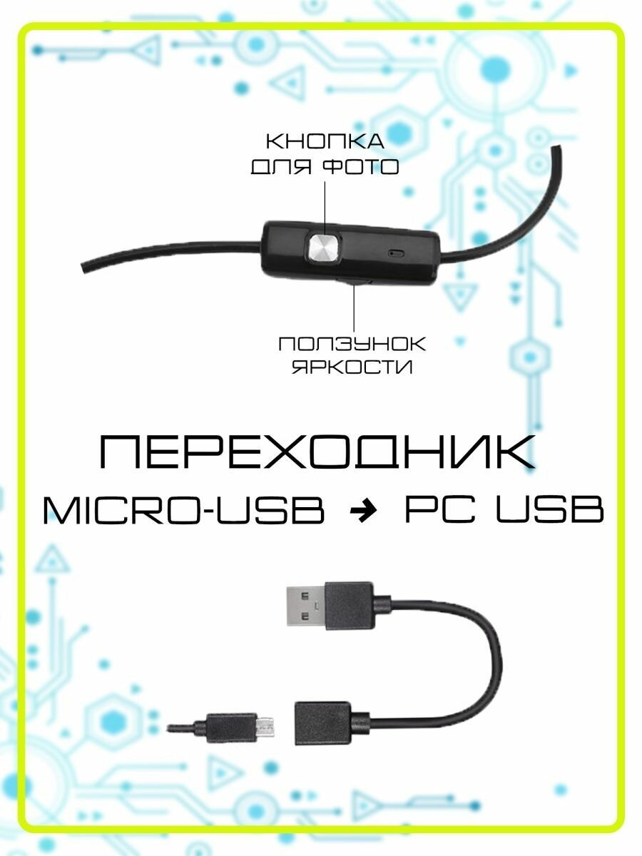 Эндоскоп 5м для Android и PC, USB эндоскоп для труднодоступных мест, гибкая камера видеонаблюдения для смартфона и компьютера интересное: