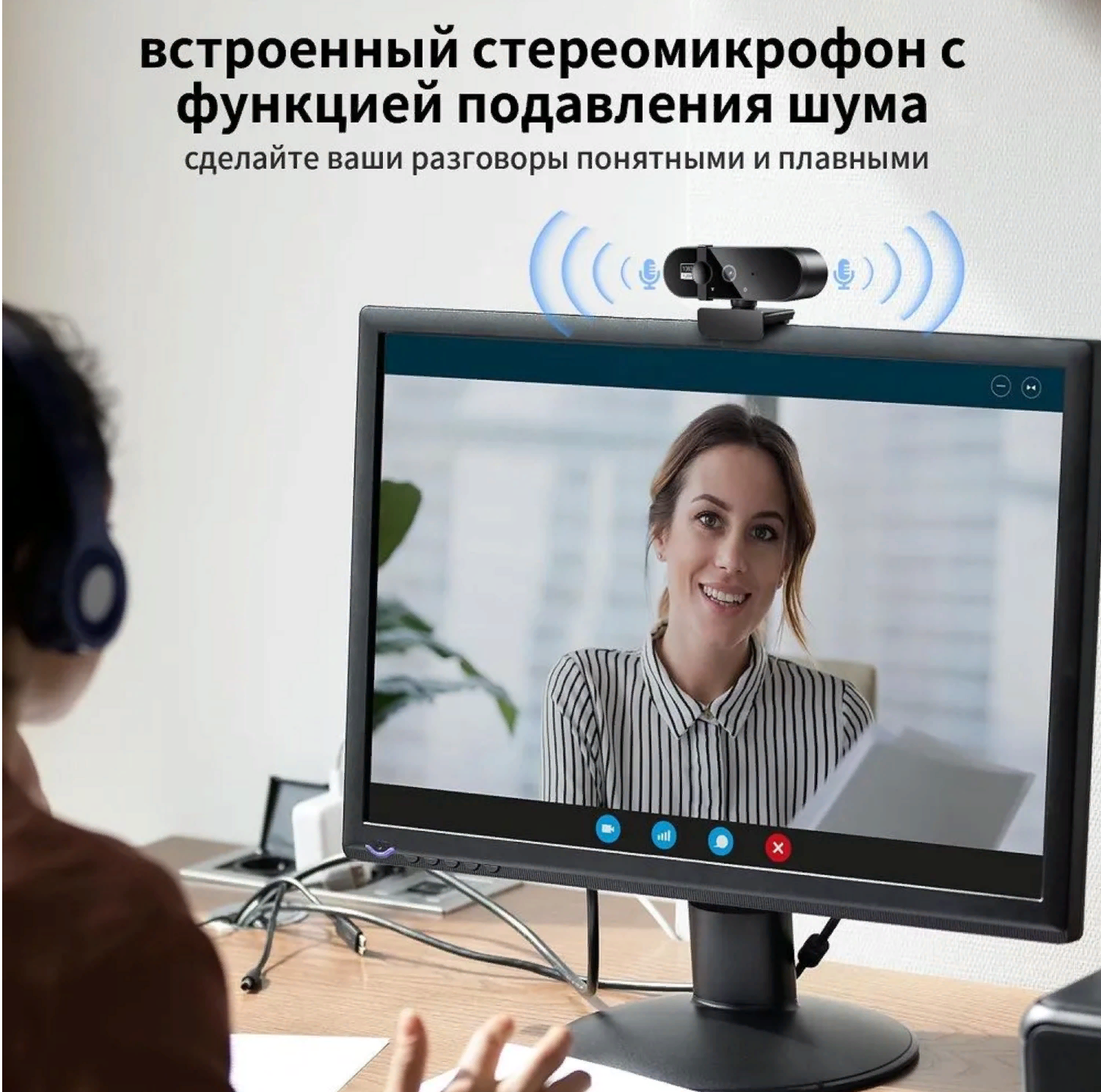 Веб-камера с микрофоном и автофокусом Н-50 /2048х1536/ 2k 1080Р Full HD | Для прямой трансляции видео вызова / Конференции связи / Игровой сеанс интересное:
