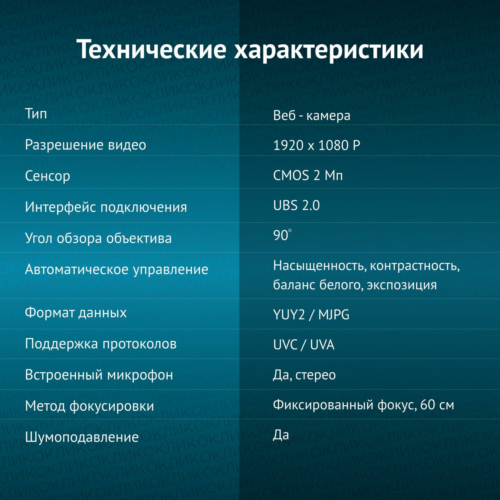 Веб-камера Oklick OK-C21FH, черный Разрешение веб-камеры: 1920x1080 px
