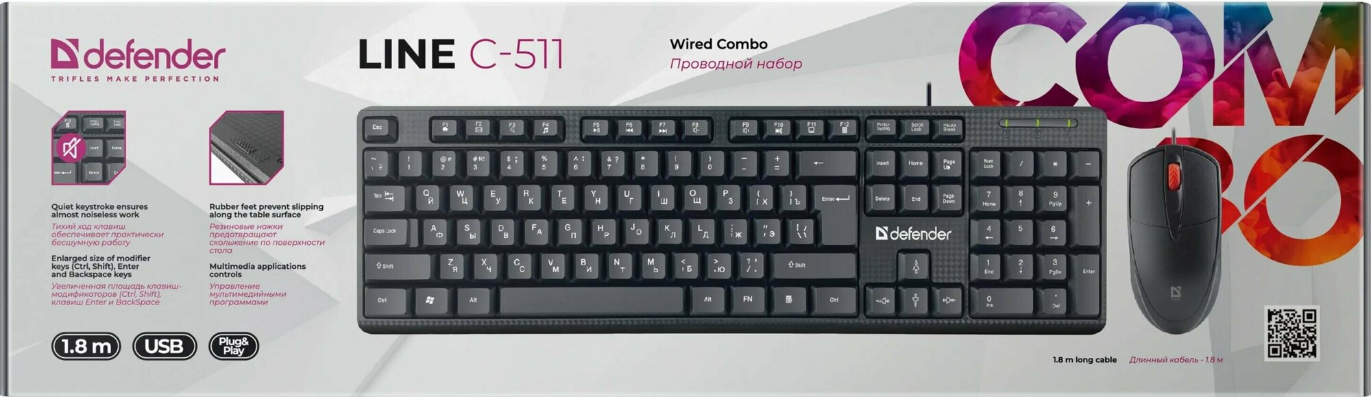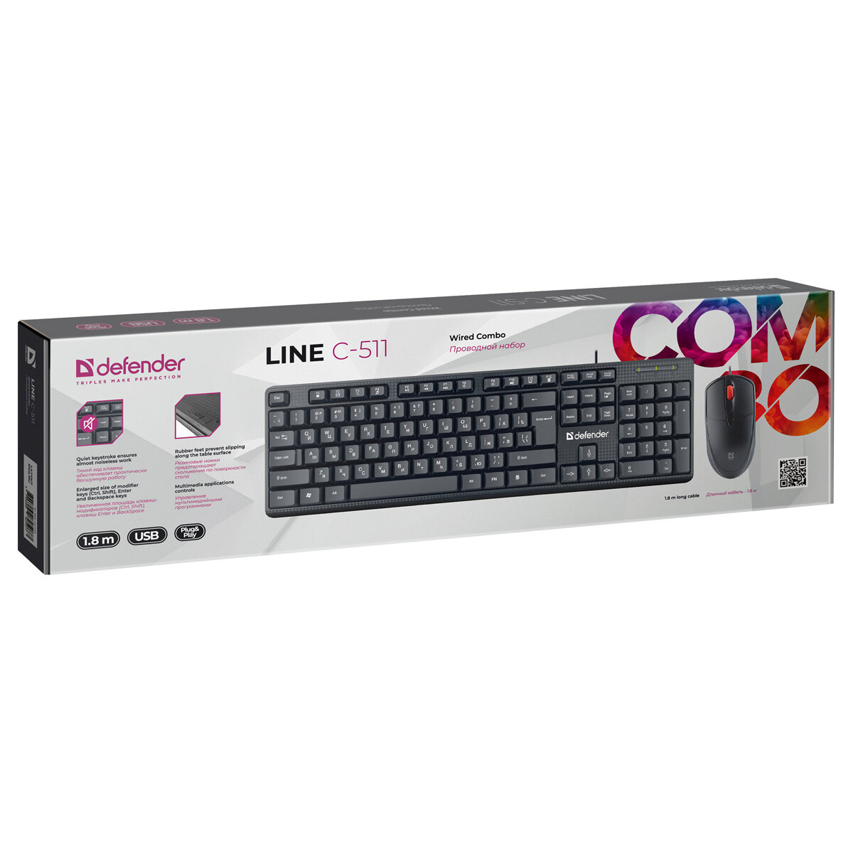 Комплект мышь и клавиатура в наборе Defender Line C-511 RU, черный,1.8 м