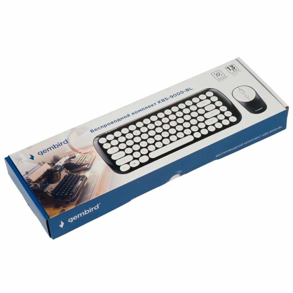 Купить Комплект кл-ра+мышь беспров. Gembird KBS-9000-BL, черный, 2.4ГГц, 1600 DPI