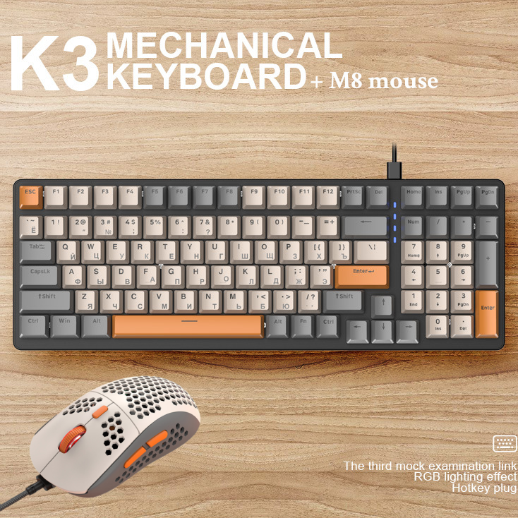 Комплект мышь клавиатура механическая русская К3 мышка игровая М8 с подсветкой проводная набор для компьютера ноутбука Gaming/game mouse keyboard