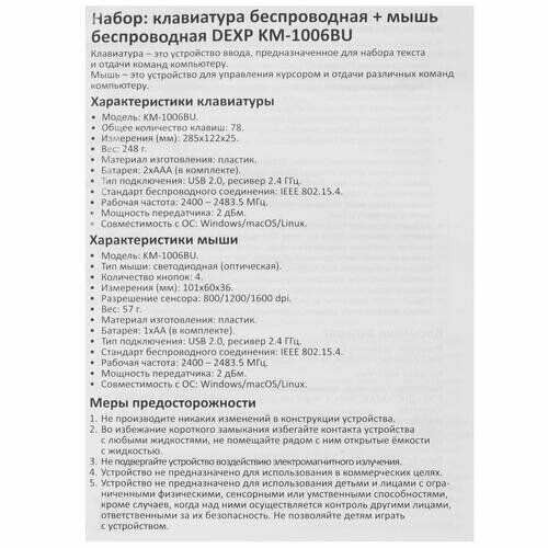 Клавиатура+мышь беспроводная DEXP KM-1006BU черный интересное: