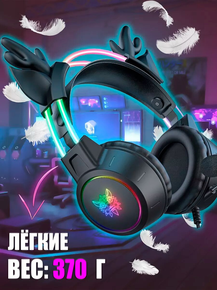 СохранитьИгровые наушники ONIKUMA X15 pro Pink Star черные с оленьими ушками и подсветкой интересное: