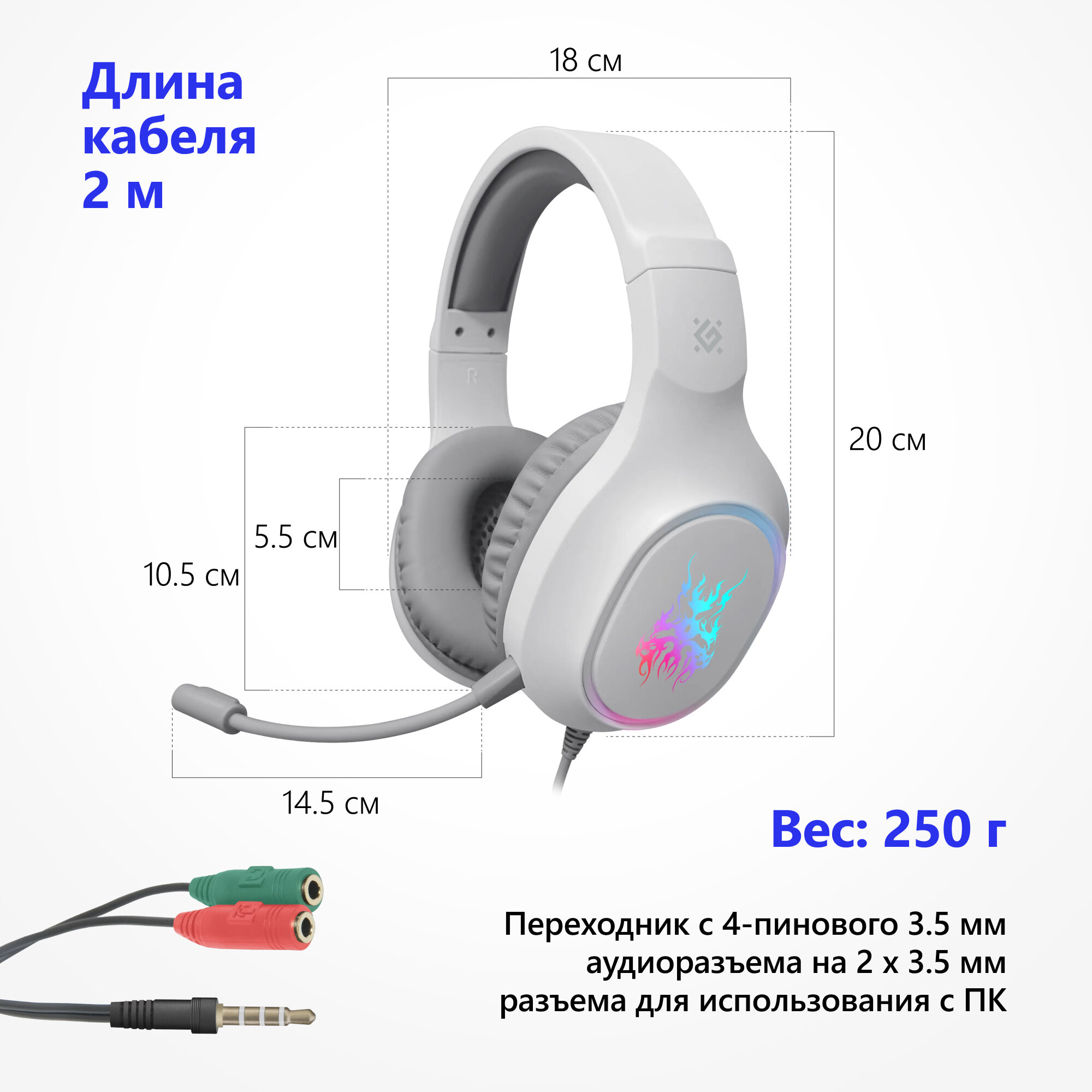 Компьютерная гарнитура Defender Fury, белый (64480) интересное: