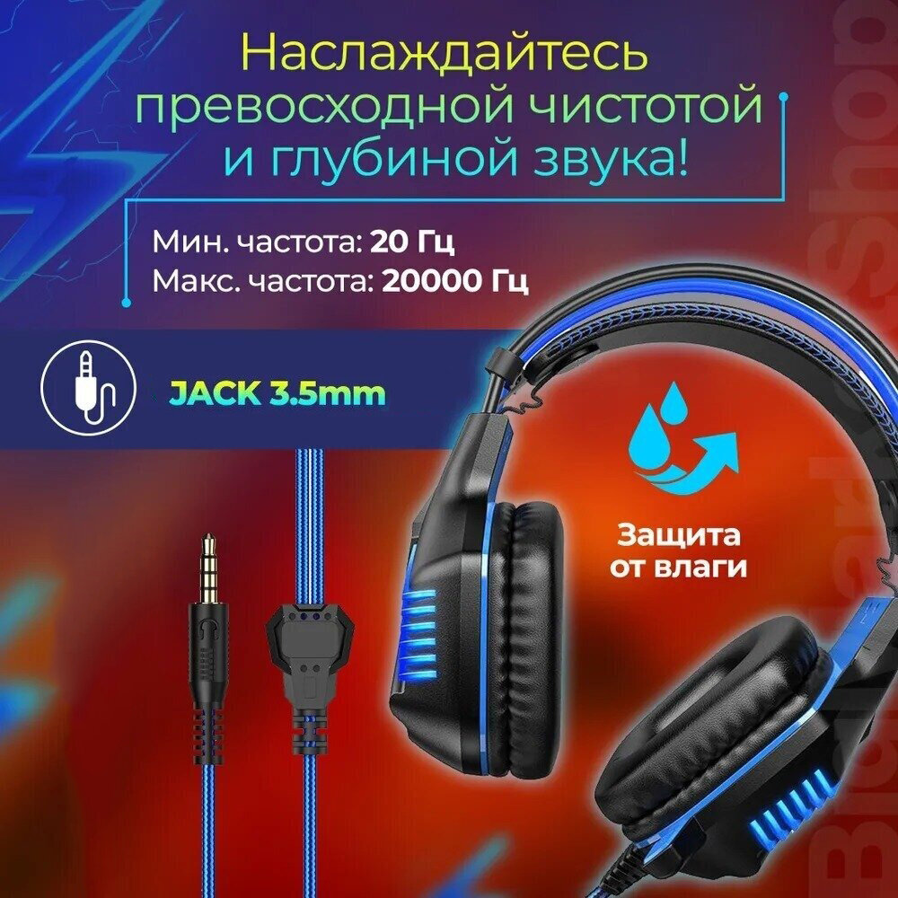 Игровая гарнитура для компьютера с микрофоном,проводные Полноразмерные игровые/геймерские наушники, Гарнитура для ПК, MAC,разъем mini jack 3.5,синий интересное: