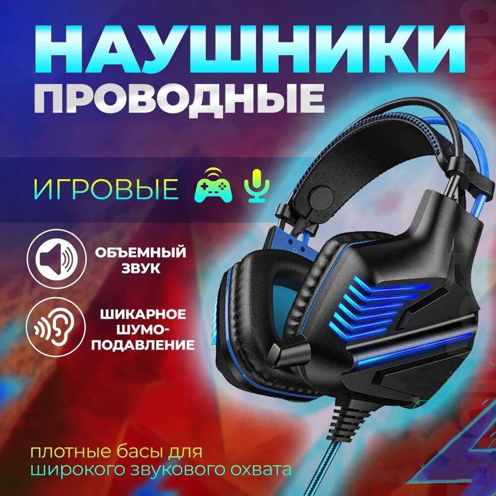 Купить Игровая гарнитура для компьютера с микрофоном,проводные Полноразмерные игровые/геймерские наушники, Гарнитура для ПК, MAC,разъем mini jack 3.5,синий