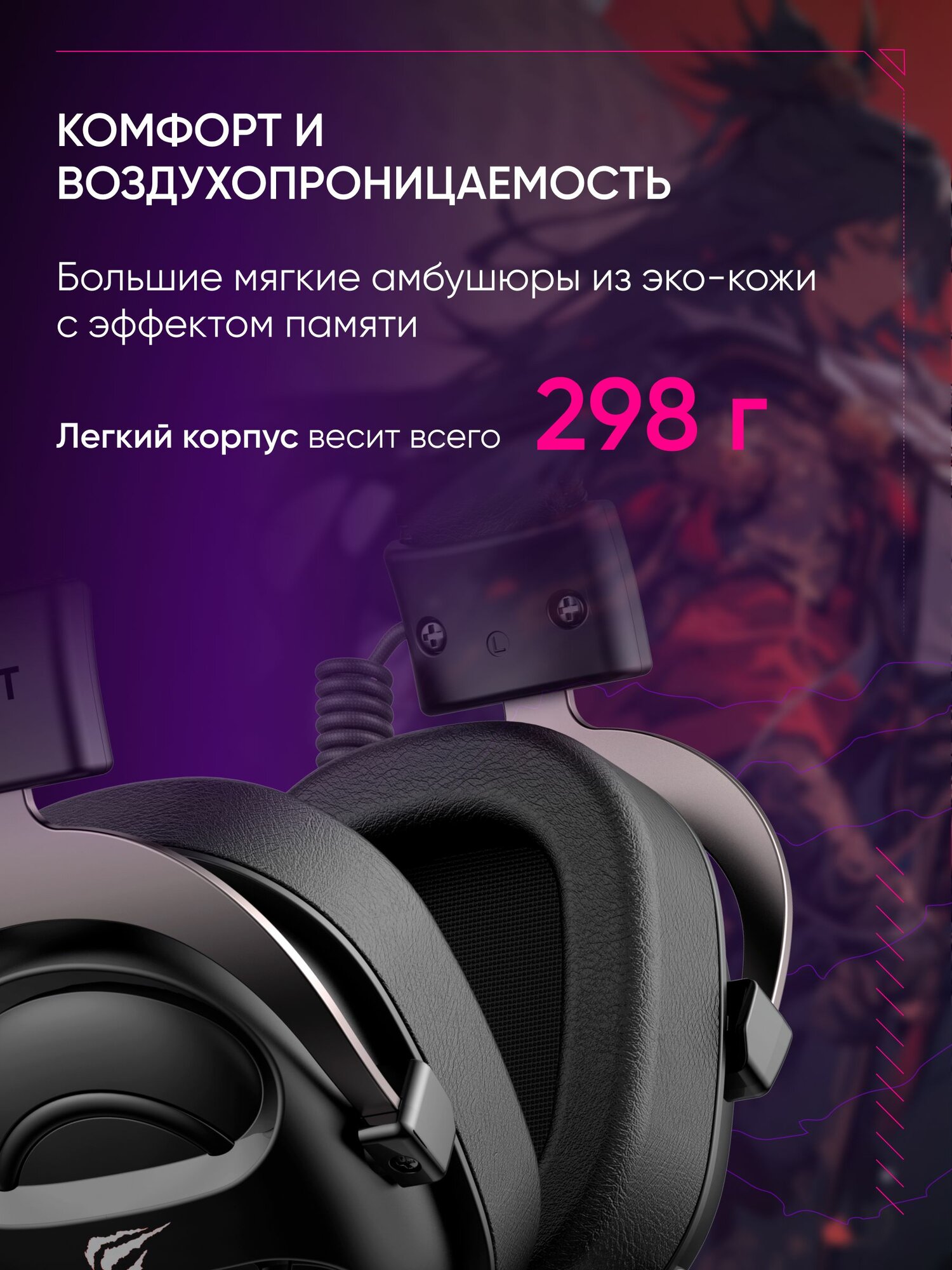 Игровая гарнитура HAVIT H2002d 3,5 мм белый/фиолетовый