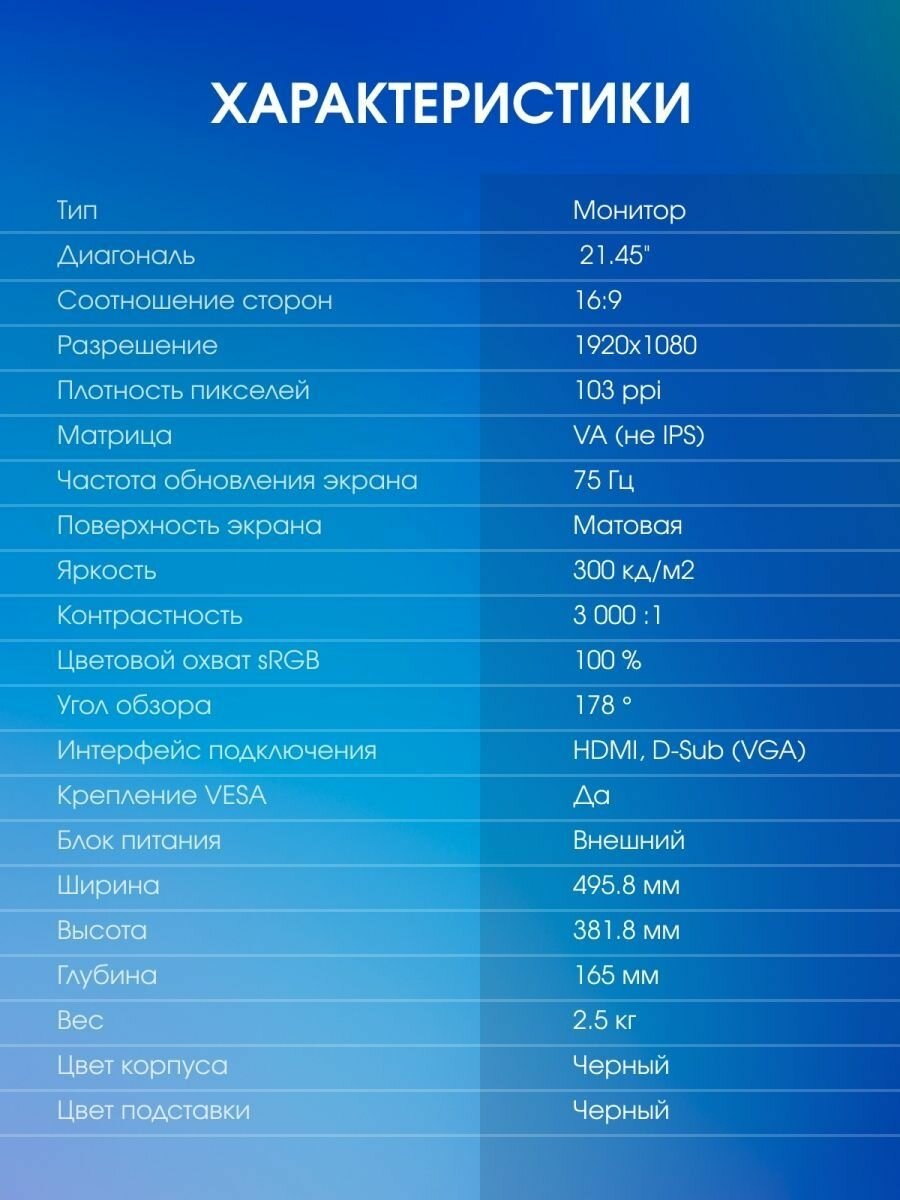Монитор Xiaomi Redmi 21,45", 75 гц интересное: