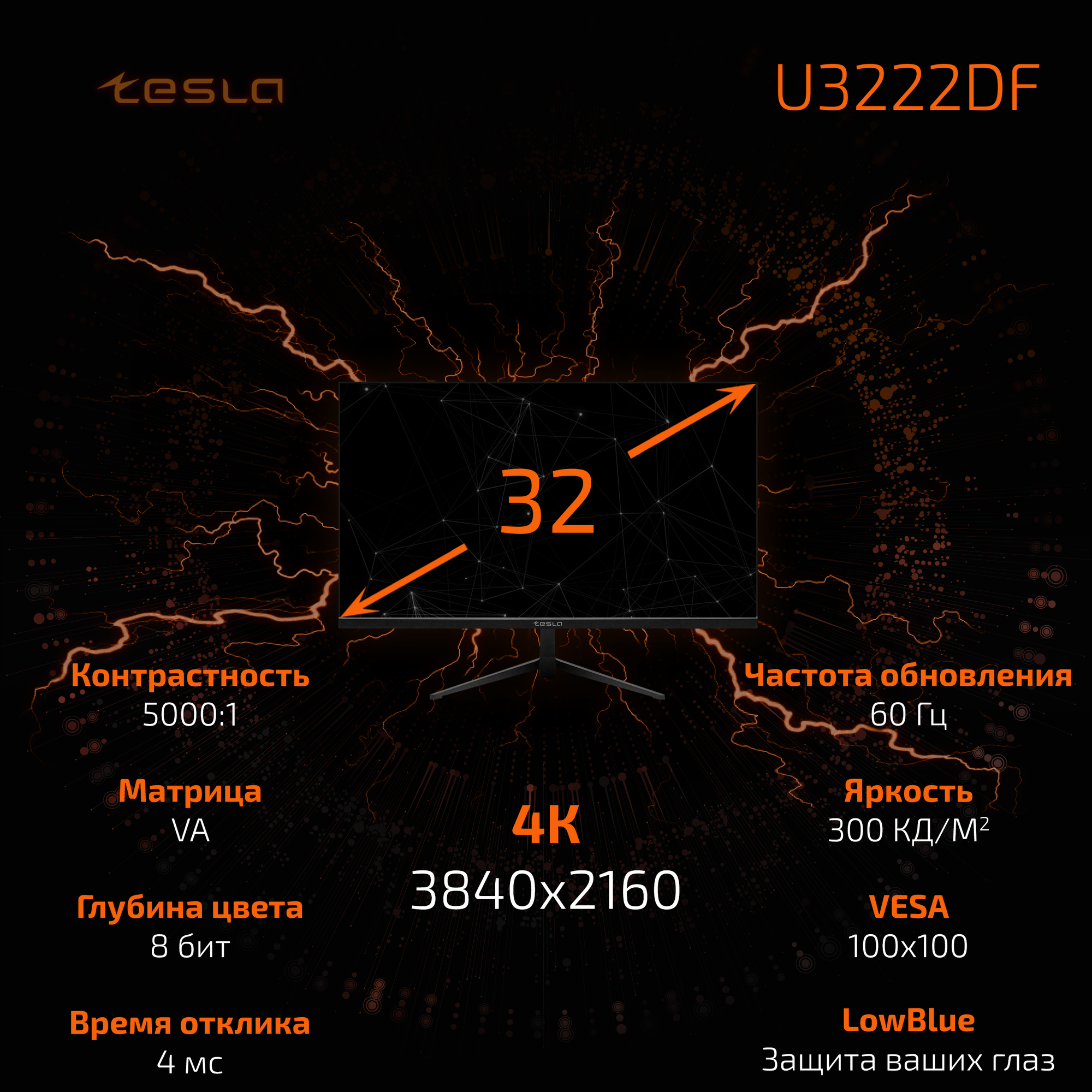 Монитор TESLA 32'' U3222DF, 4K, VA, 60Гц, чёрный интересное: