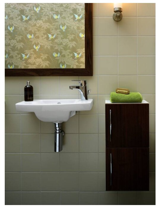| Отзыв: | Простая нестандартная раковина для маленьких туалетов.Очень удобное боковое крепление смесителя .Есть боковая полка с другой стороны. |