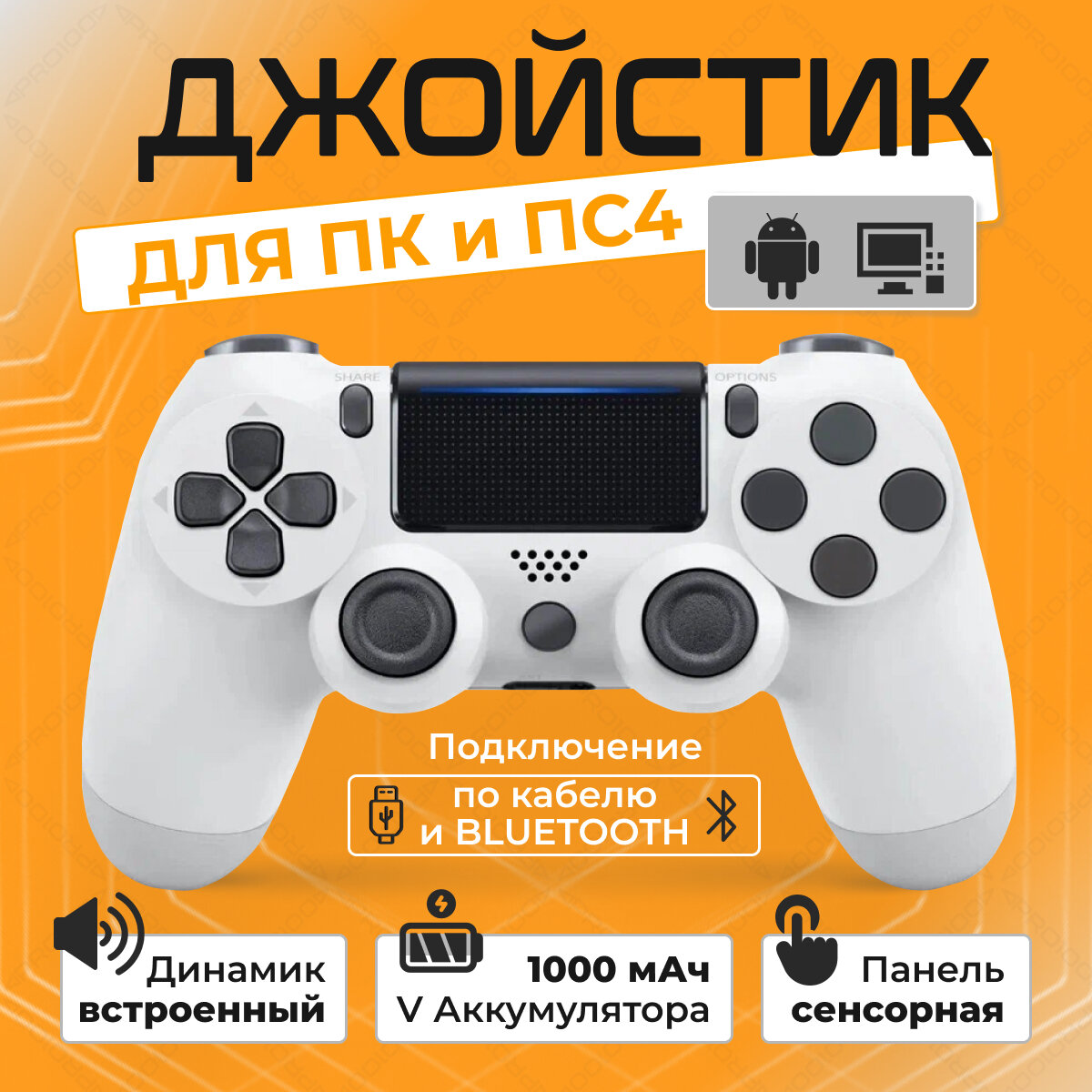 СохранитьБеспроводной геймпад для PS4 и ПК / Джойстик Bluetooth для Playstation 4, Apple (IPhone, IPad), Androind, ПК - белый интересное:
