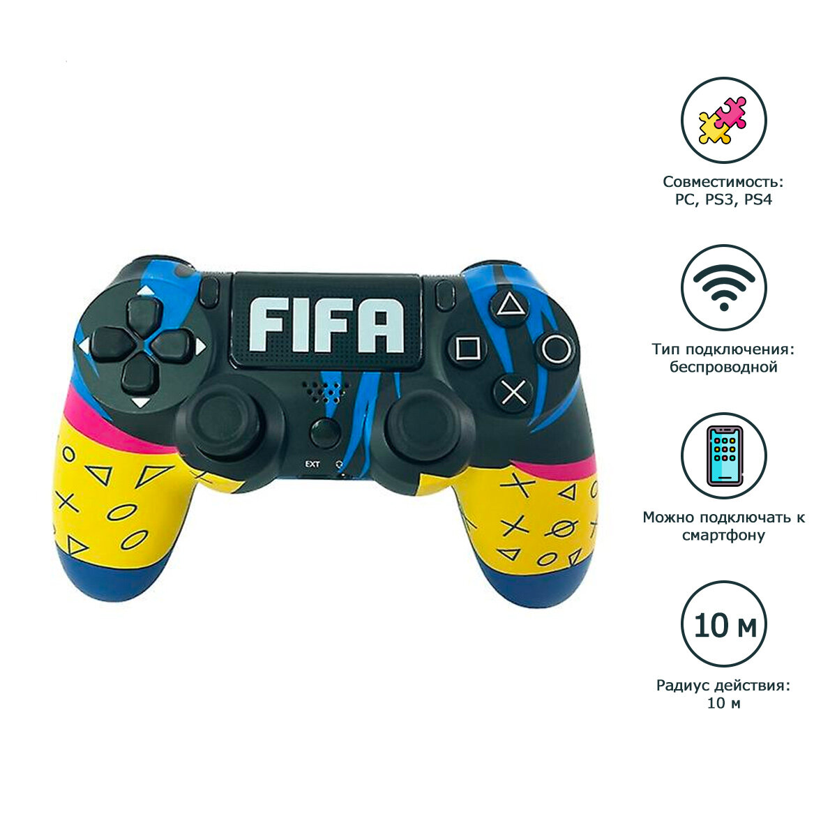 Беспроводной джойстик (геймпад) для PS4, FIFA черный / Bluetooth