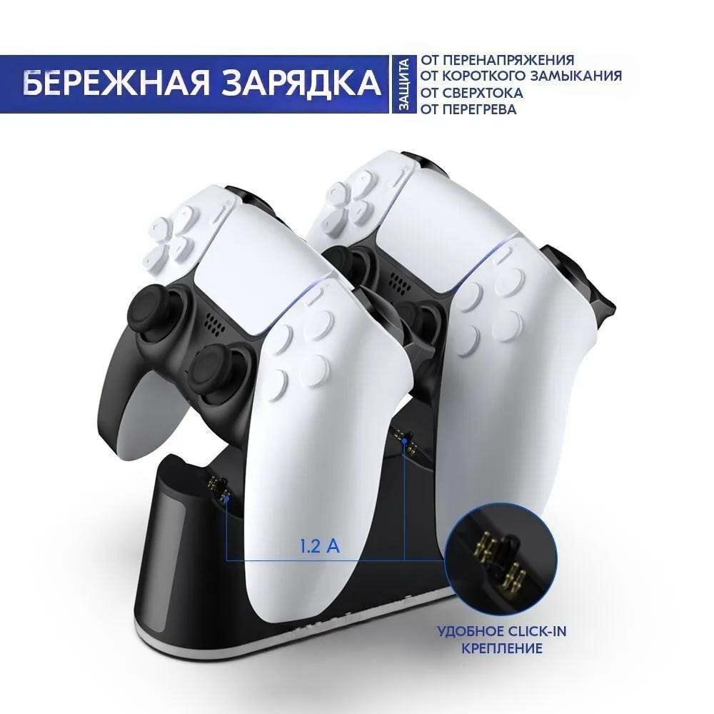 Зарядная станция для 2-х геймпадов с индикаторами заряда Playstation DualSense 5, VOLFOX P5-102