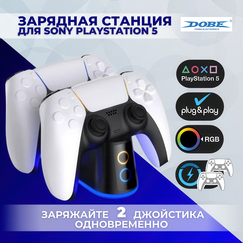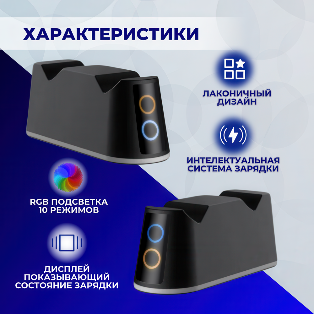Зарядная станция VOLFOX для 2-х геймпадов Playstation DualSense 5, черная, с индикацией заряда интересное: