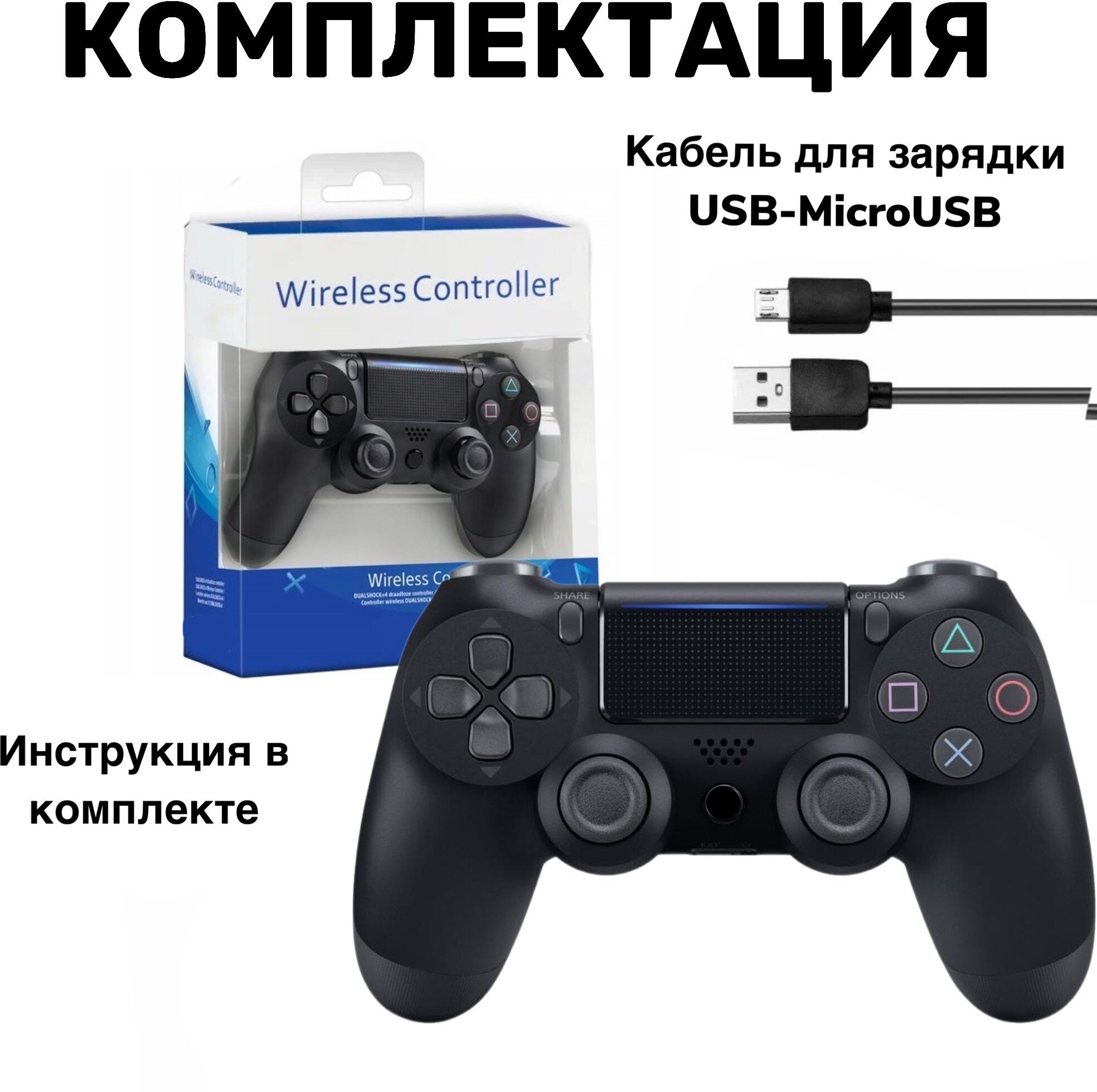 Беспроводной геймпад для PS4 / Джойстик Bluetooth для Playstation 4, Apple (IPhone, IPad), Androind, ПК - черный интересное: