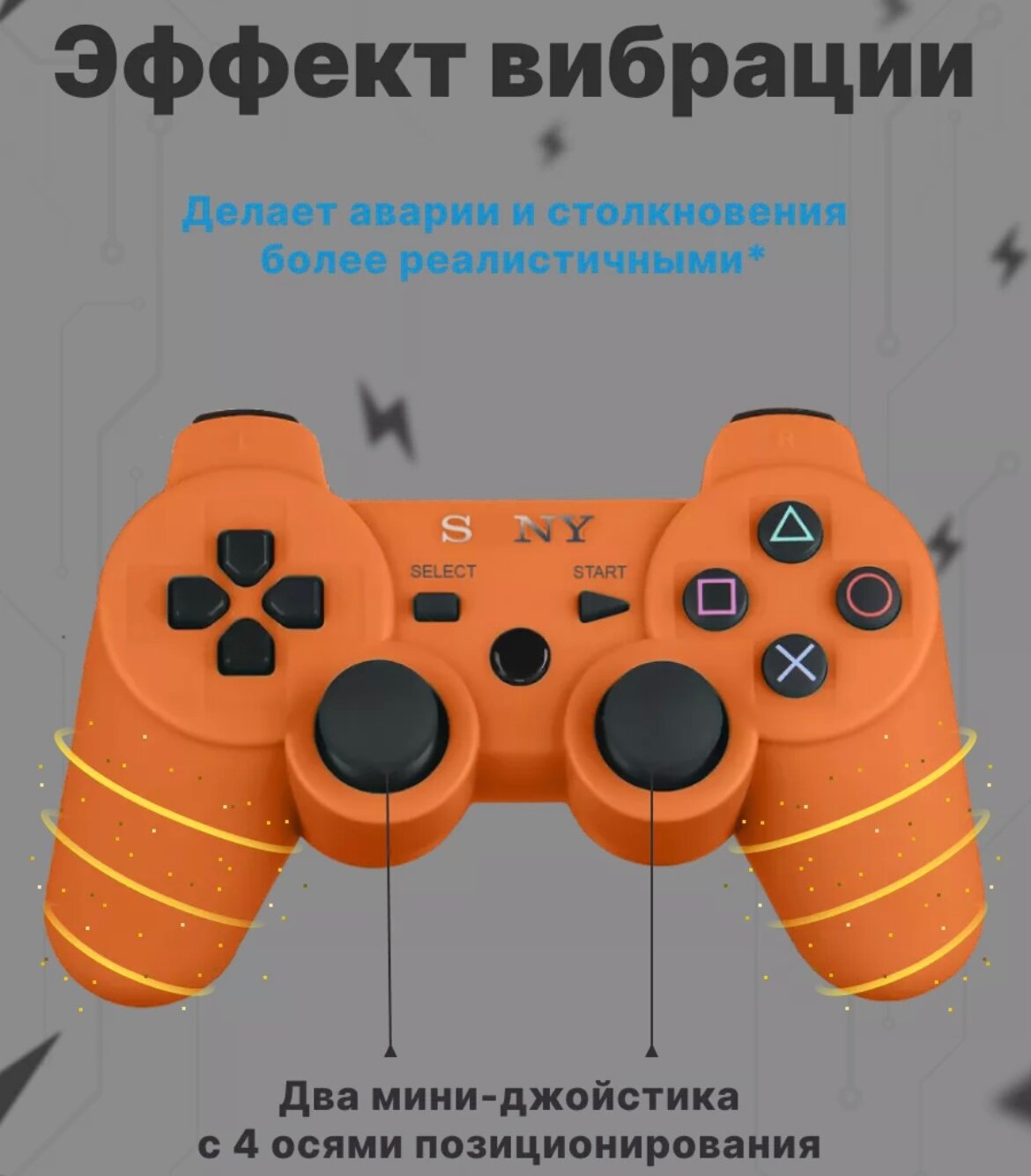 Джойстик для приставки оранжевый / Геймпад для Компьютера PS3