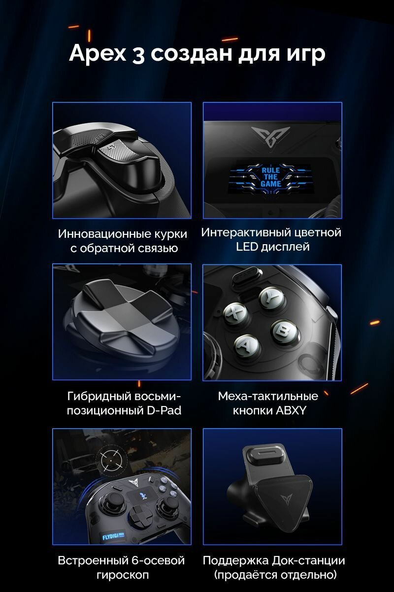 | Дополнительная информация | Совместим с геймпадом Flydigi Apex 3 |