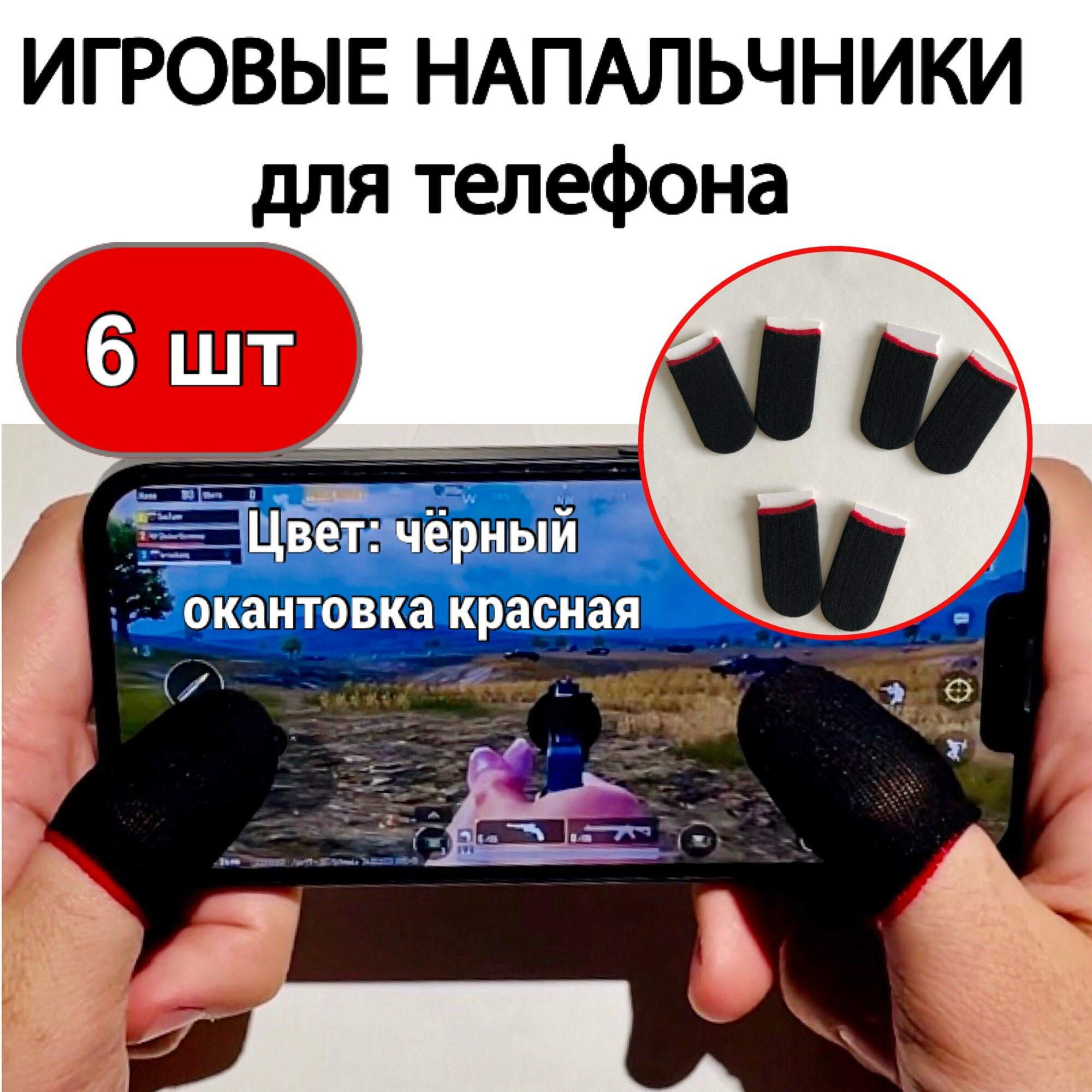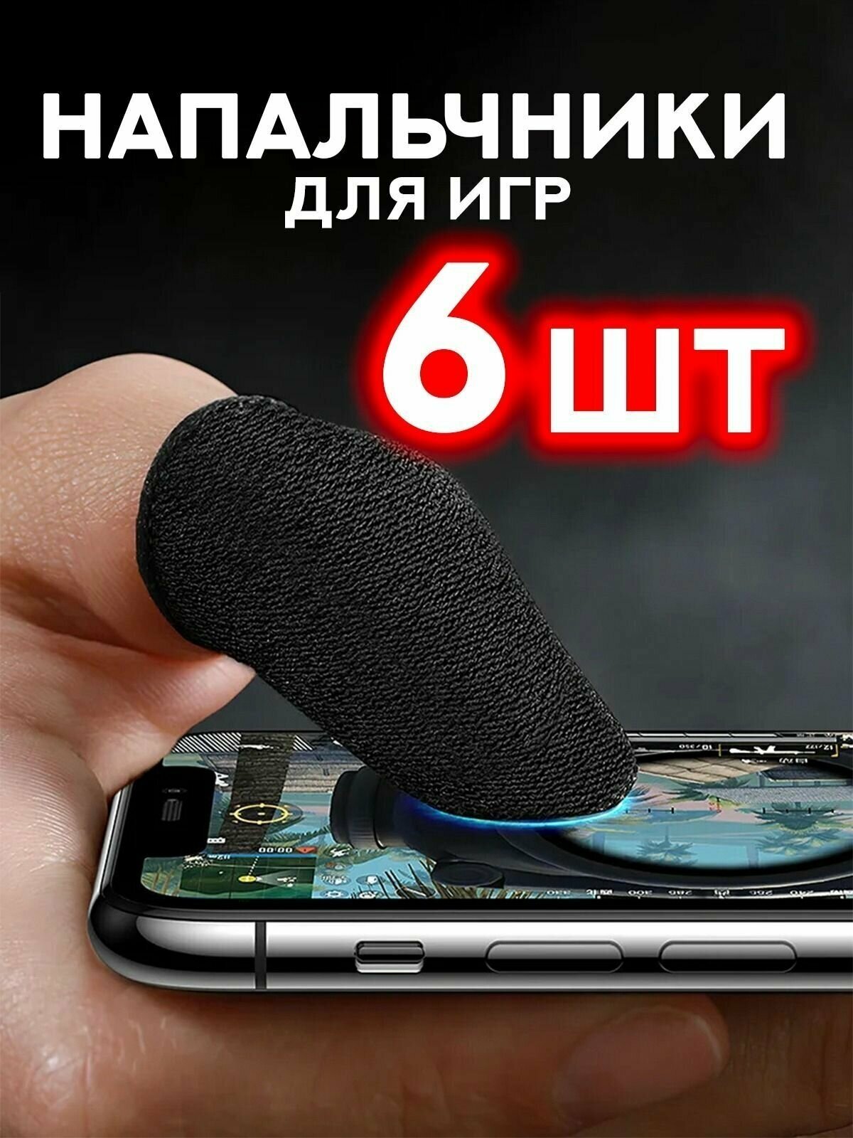 Купить напальчники игровые черно-красные 6 штук