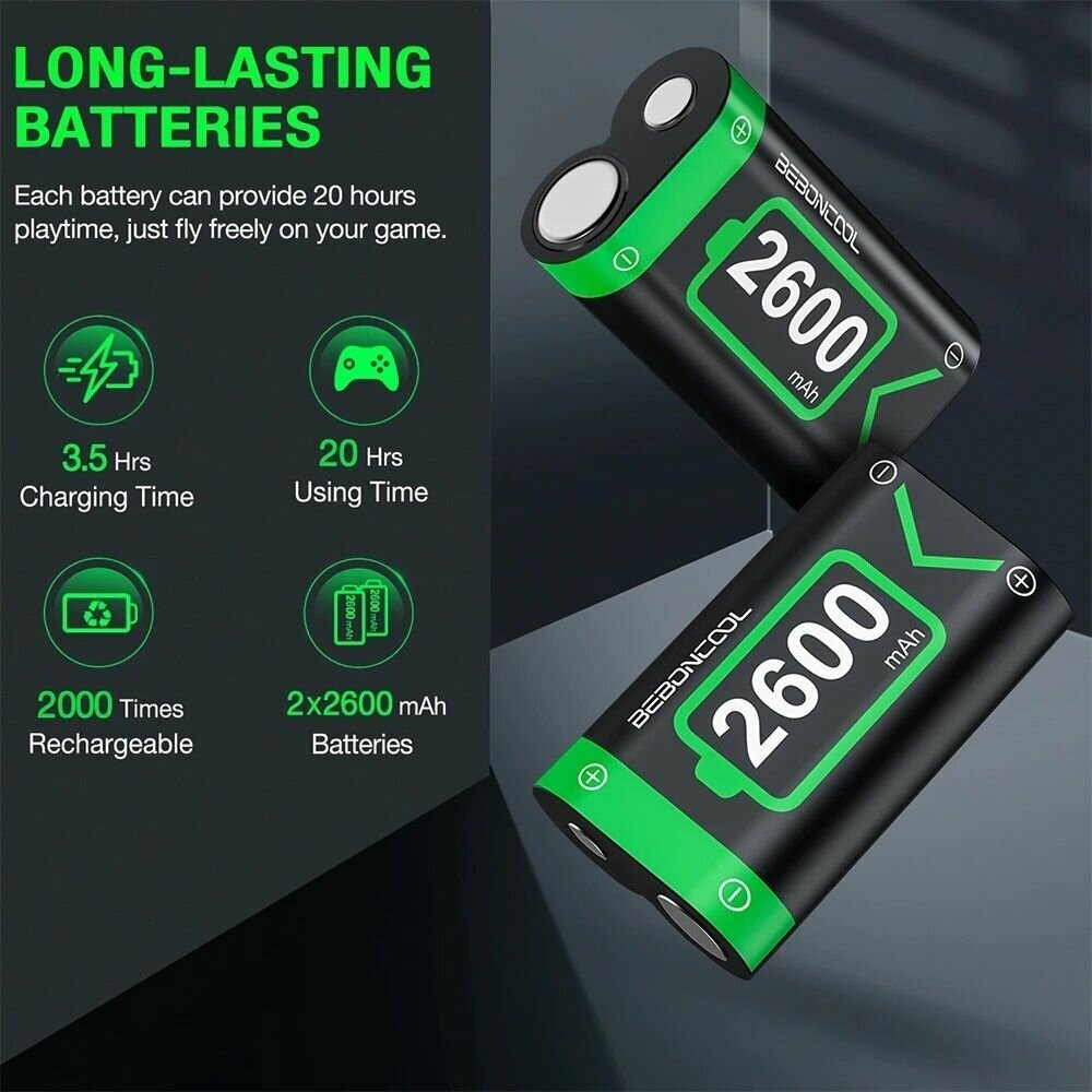 Зарядная станция с 2 аккумуляторами 2600mAh для геймпада XBOX ONE / SERIES S X BEBONCOOL с крышкой интересное: