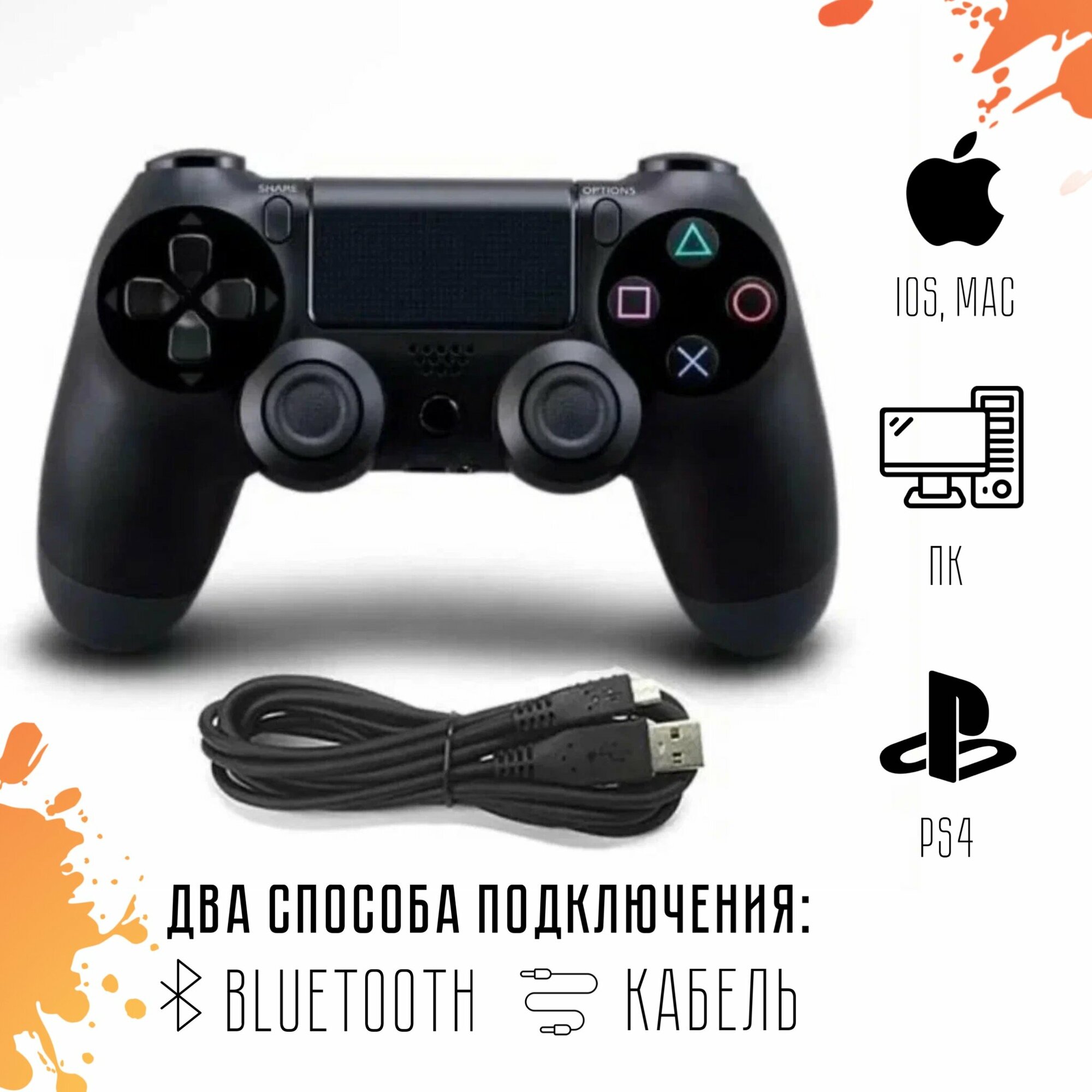 Беспроводной Bluetooth геймпад для PlayStation 4. Джойстик совместимый с PS4, PC и Mac, Apple, Android, черный интересное: