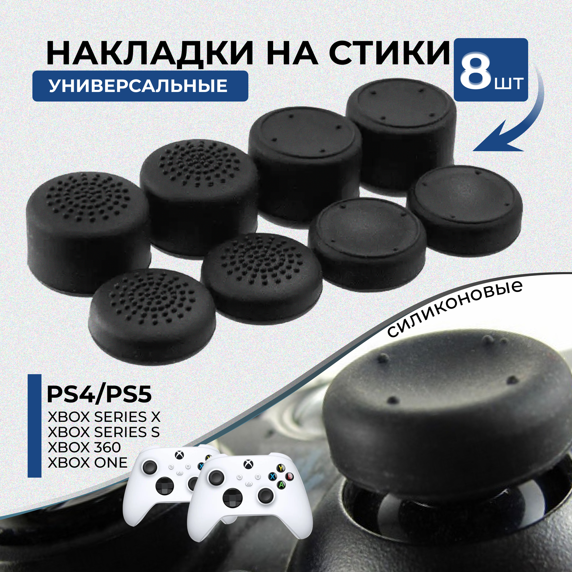 Накладки на стики для геймпада универсальные для PS5, PS4, PS3, XBOX Series, ONE, Xbox360, Switch Pro / 8 шт, черные интересное: