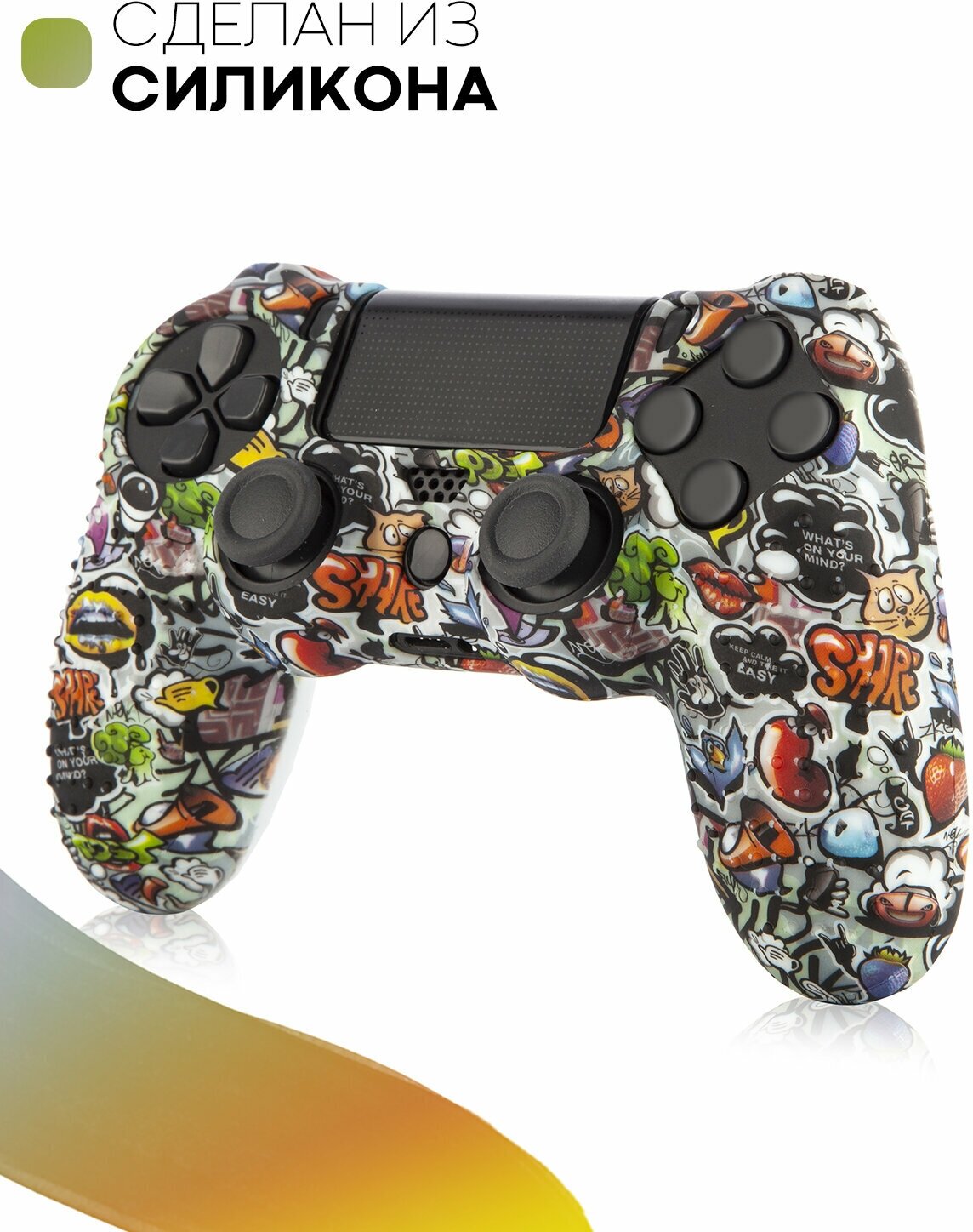 Защитный силиконовый чехол для геймпада PS4 (матовая накладка для контроллера ПС4) с рисунком, граффити