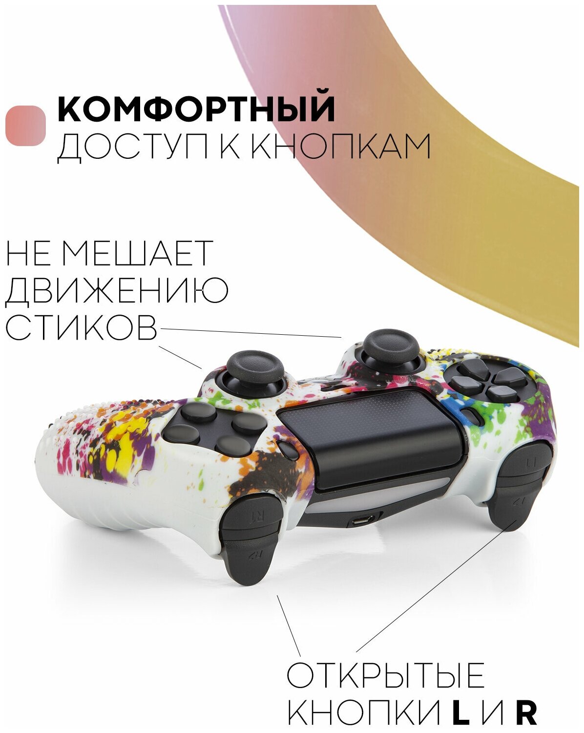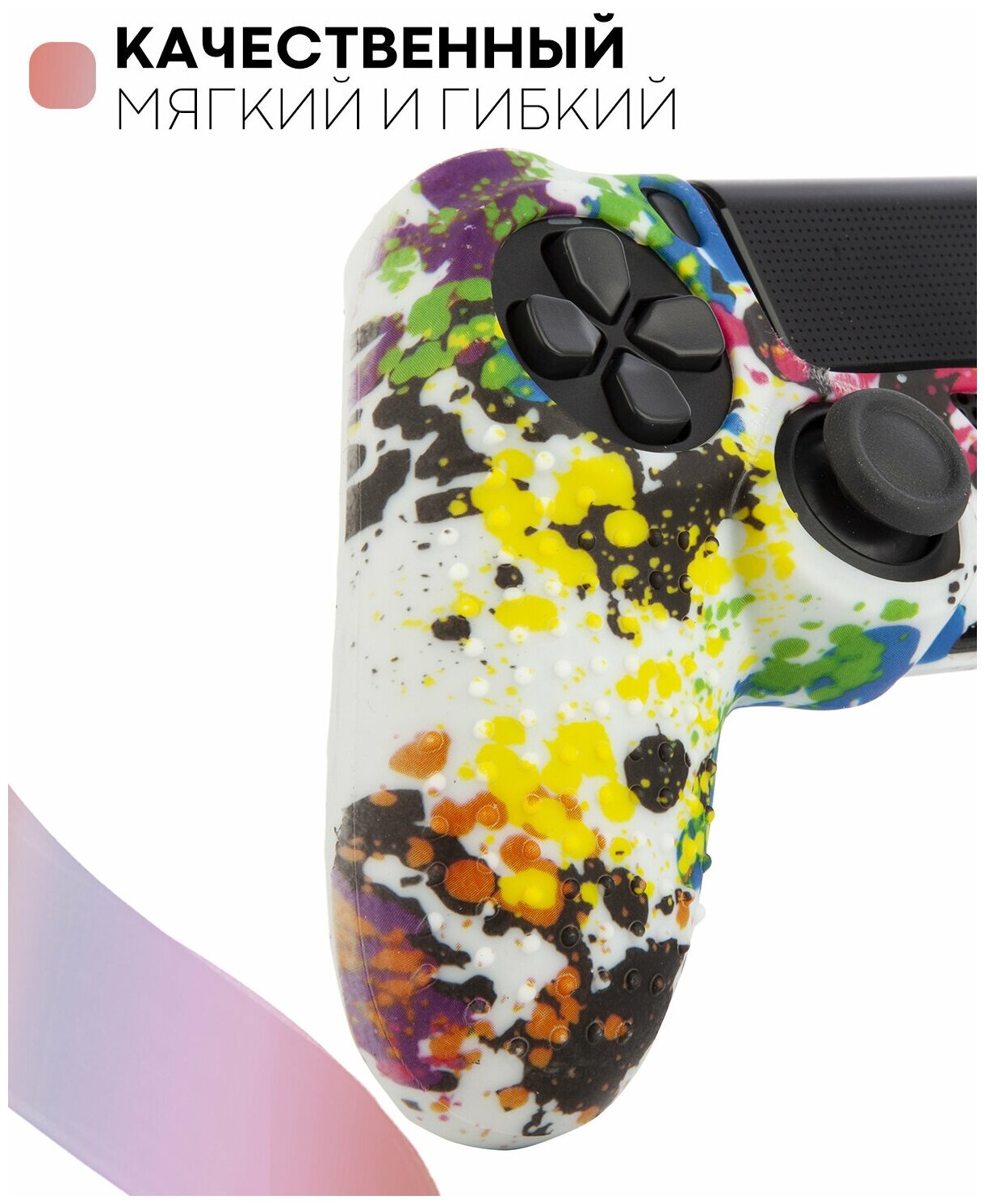 Силиконовый чехол на геймпад Sony PlayStation 4 DualShock (джойстик Сони ПС4), фактурный, красочная абстракция
