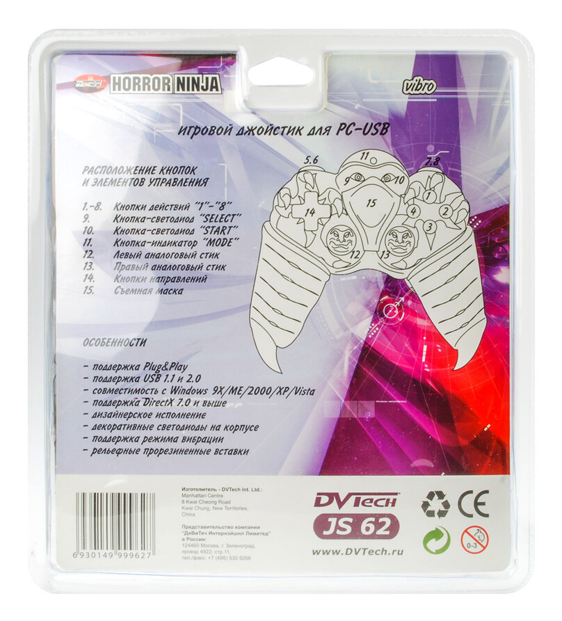 Джойстик USB проводной для ПК DVTech JS62 Horror Ninja интересное: