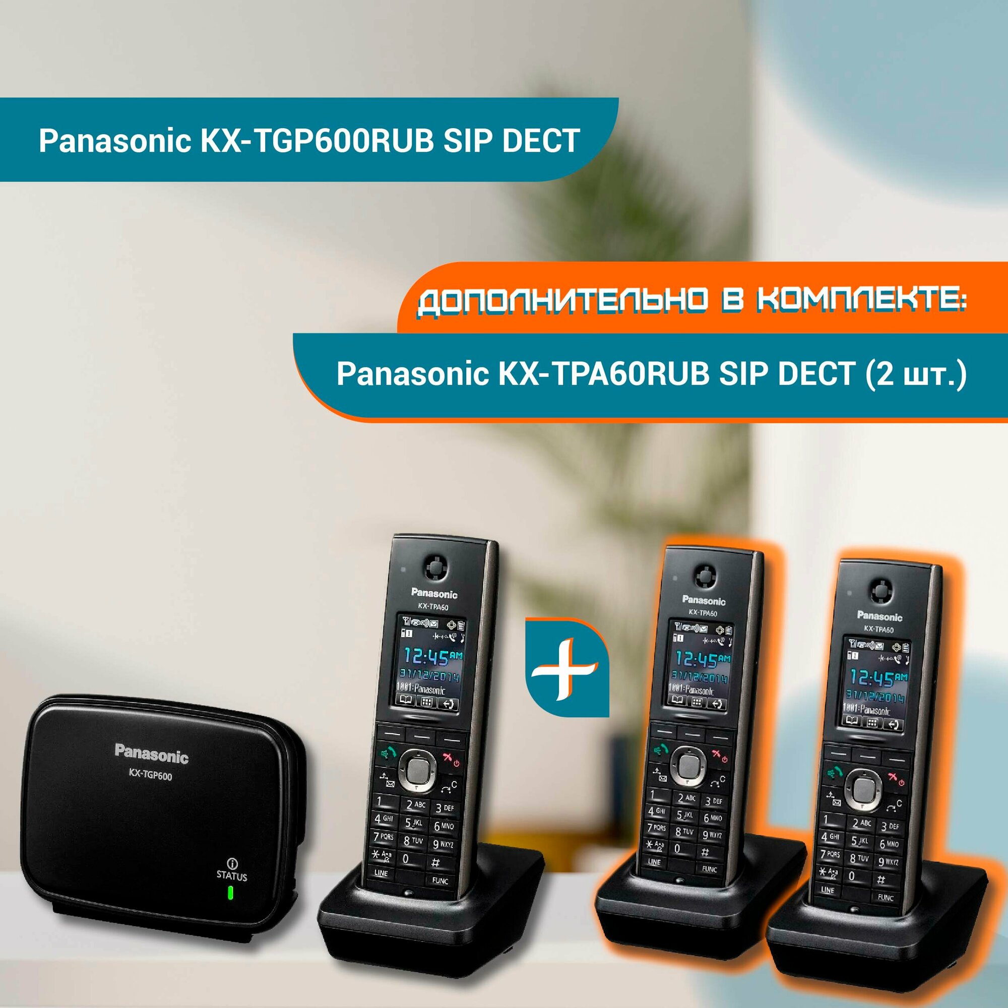 Купить Комплект Panasonic KX-TGP600RUB SIP DECT телефон, черный + 2 дополнительные трубки Panasonic KX-TPA60RU