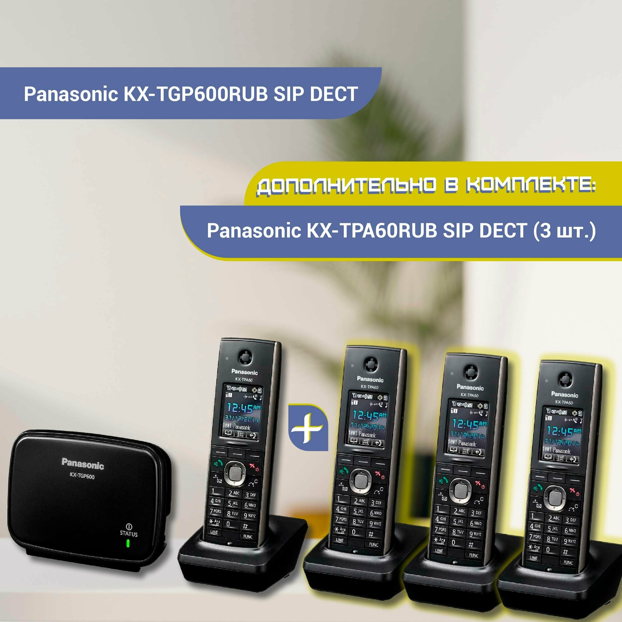 Купить Комплект Panasonic KX-TGP600RUB SIP DECT телефон, черный + 3 дополнительные трубки Panasonic KX-TPA60RU