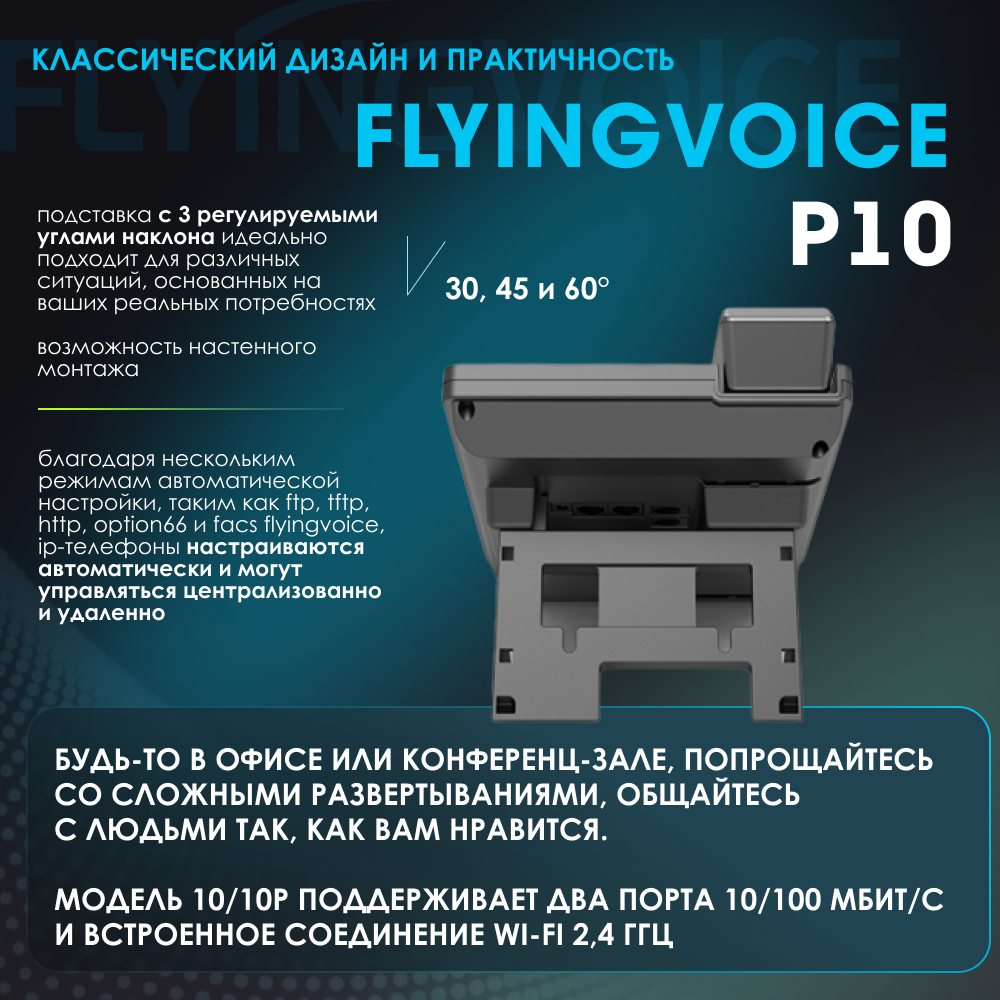 IP-телефон FLYINGVOICE P10, 2 SIP аккаунта, монохромный дисплей 2,3 дюйма, 132 x 64 с подсветкой, конференция на 6 абонентов интересное: